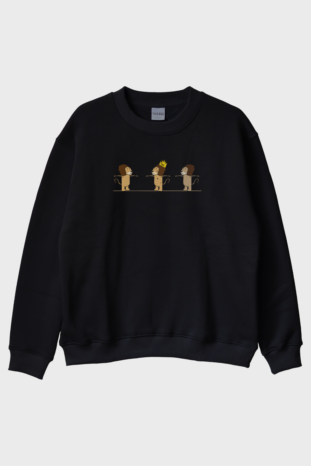 Alfa Sorunu Bisiklet Yaka Sweatshirt, tasarımında barındırdığı üç aslan figürü ile dikkat çekiyor. Ortadaki aslanın başındaki kraliyet tacı, bisiklet yaka sweatshirte mizahi bir hiyerarşi teması kazandırıyor ve genç kitleler için adeta bir parodi niteliği taşıyor. Bu bisiklet yaka sweatshirt, mizah ve ironi tutkunları için özel olarak tasarlandı. Üç aslanın yan yana dizilişi, aralarındaki güç ve hiyerarşi ilişkisini alaycı bir bakış açısıyla ele alırken, ortadaki aslanın tacı da ironinin zirvesi olarak görülüyor. Kendinizi ve çevrenizi güldürmek istiyorsanız ve mizahı günlük stilinize yansıtmak istiyorsanız, bu tasarım tam size göre.