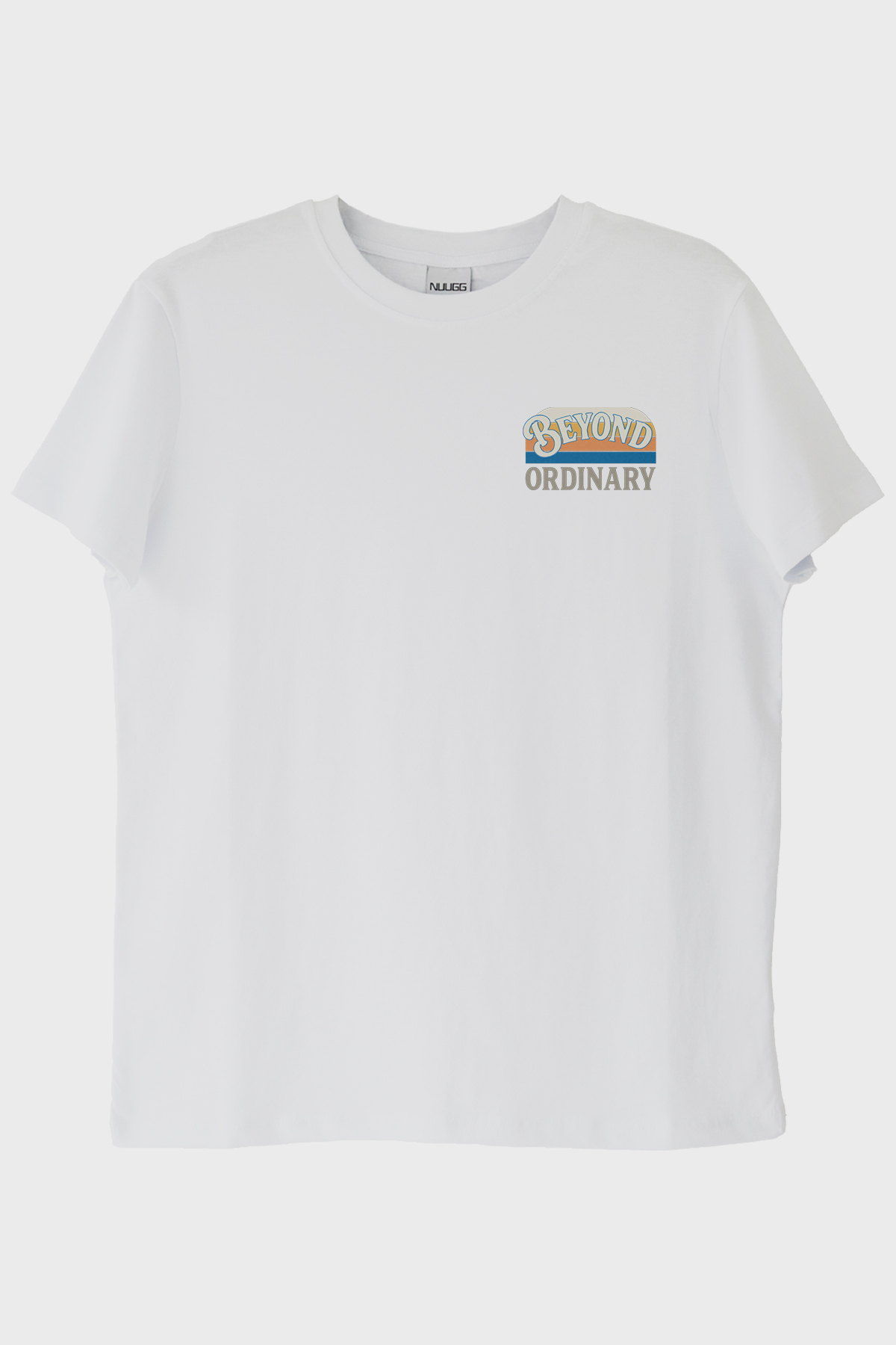 Beyond Ordinary Baskılı Beyaz Tişört hem kendi kullanımınız hem de sevdikleriniz için harika bir hediye seçeneği sunuyor. Stilini konuşturan bu tişört, esprili ve modern tasarımı ile gençlerden yetişkinlere herkesin favorisi olacak. İroni ve sanat esintisi taşıyan bu tasarım, farklı kombinler ile ister Irony ister Artisan kategorisine de mükemmel uyum sağlar.