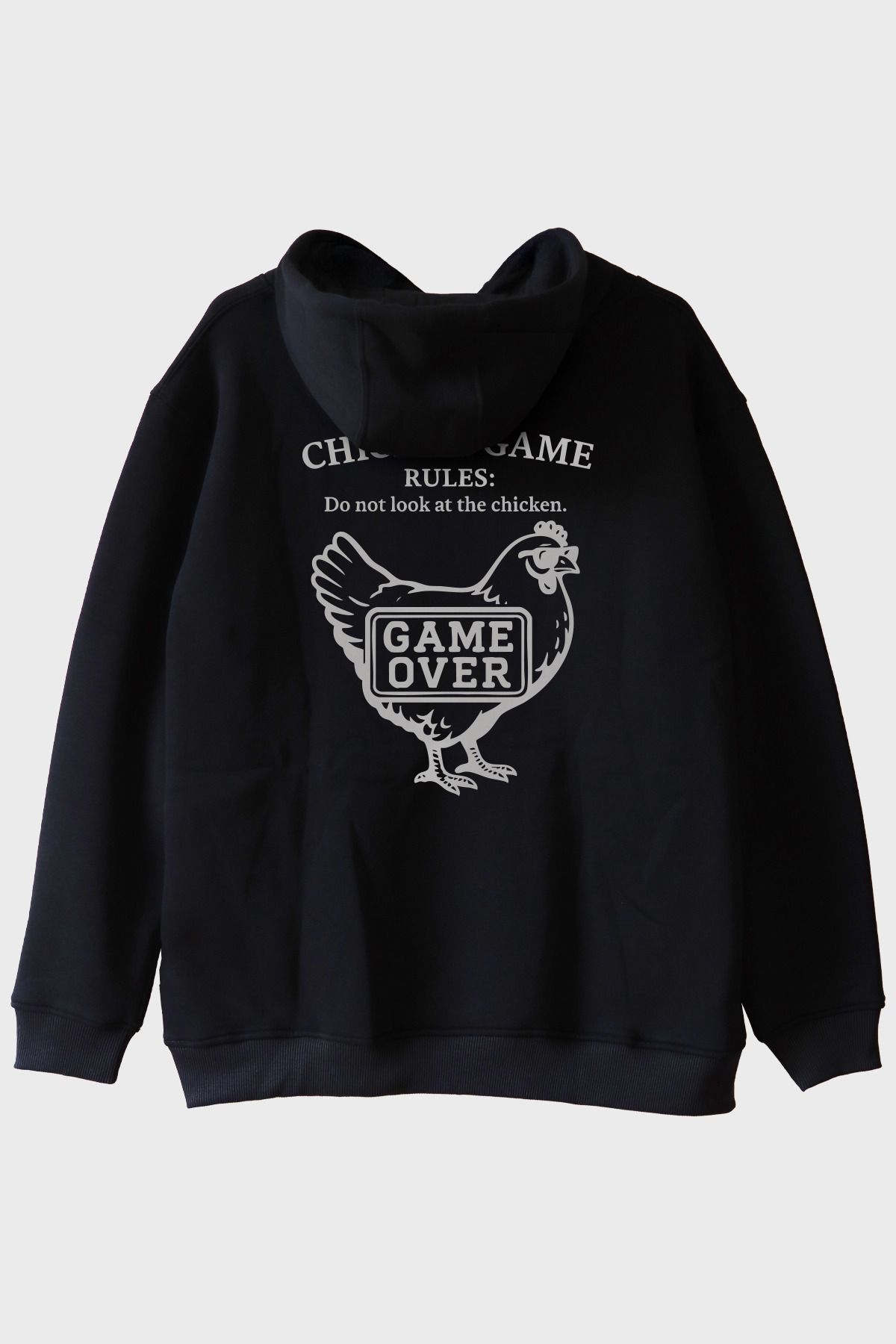 Yeni bir hoodie stili mi arıyorsunuz? İşte karşınızda GAME OVER Tavuk Tasarımlı Baskılı Hoodie. Bu hoodie, mizahi ve alaycı bir tasarıma sahip olup, hem eğlenceli hem de dikkat çekici olmayı başarıyor. Siyah bir zemin üzerine yerleştirilmiş büyük bir tavuk illüstrasyonu ve GAME OVER yazısı ile bu hoodie, mizah anlayışınızı giyiminize taşır. Üst kısımdaki "CHICKEN GAME RULES: Do not look at the chicken." mesajı ise, esprili ve derin bir anlam katıyor.