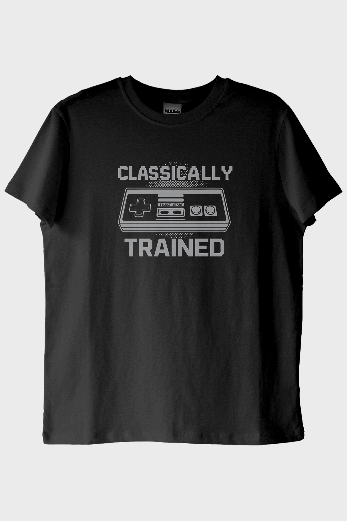Nostaljik oyun konsolu tasarımını üzerinde taşıyan T Shirt seçeneğimiz ile retro dünyasına bir adım atın. Beyaz zemin üzerine siyah detaylarla işlenmiş bu tasarım, klasik video oyun kontrolcüsünü ve "CLASSICALLY TRAINED" ifadesini ön yüzünde taşır. Tamamen %100 pamuktan üretilmiş olan tişörtün cilt dostu yapısı ve uzun ömürlü baskısı, gün boyu rahatlık sunar.