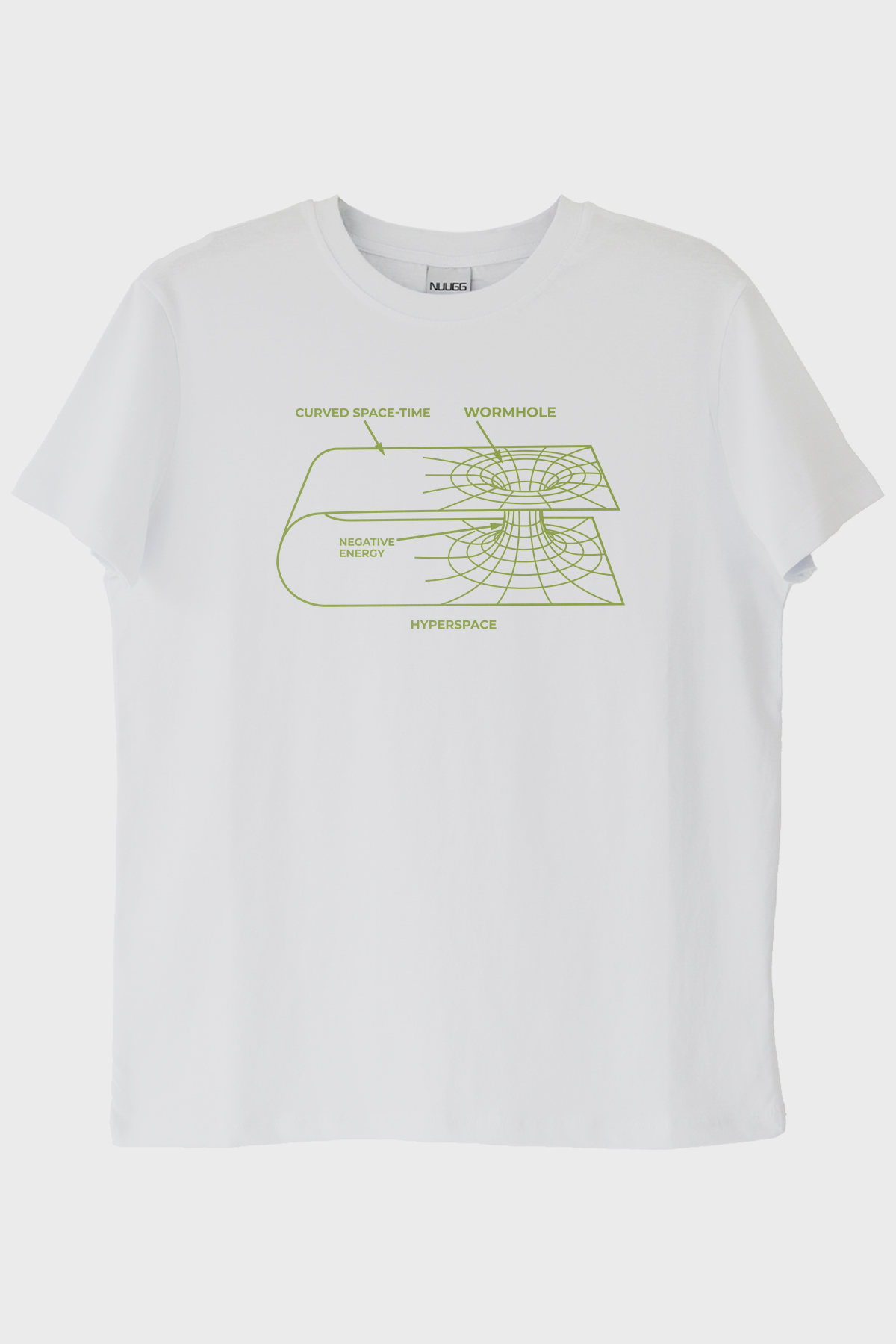 Bilimin büyüleyici dünyasına adım atmak isteyenler için tasarlanan Curved Space-Time Baskılı Solucan Deliği Tişört, bilim ve teknoloji meraklıları için mükemmel bir seçim. Bu tişörtün ön yüzündeki soluk yeşil çizim, uzay-zaman kavramını ve solucan deliklerini bilimsel bir perspektif ile sizlere sunuyor. Çizim üzerinde "Curved Space-Time," "Wormhole," "Negative Energy," ve "Hyperspace" gibi bilimsel terimler yer almakta ve bu terimler, tasarımı hem eğitici hem de ilgi çekici kılmakta.