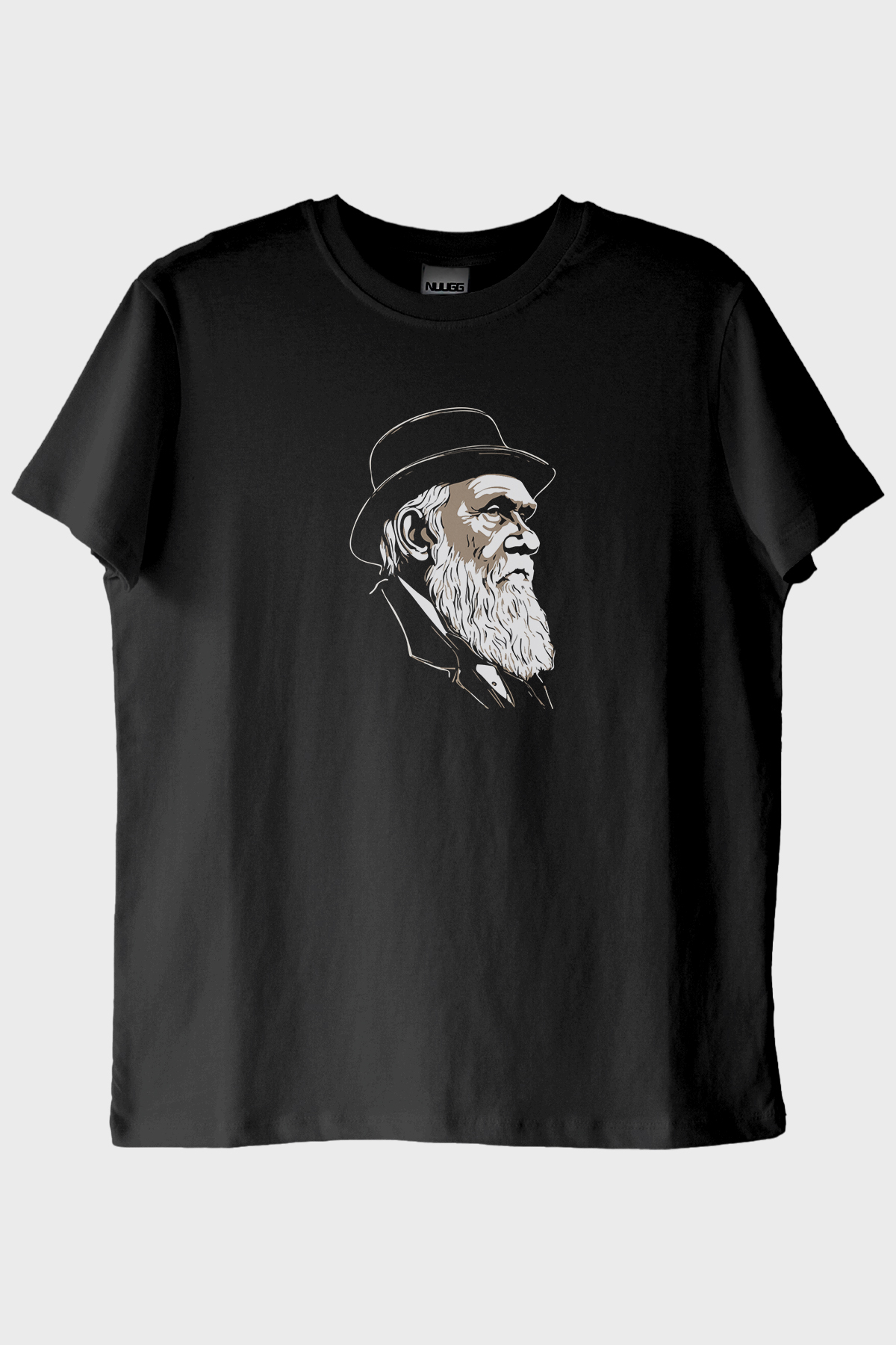 Darvin Portre Baskılı Tasarım Siyah Tişört