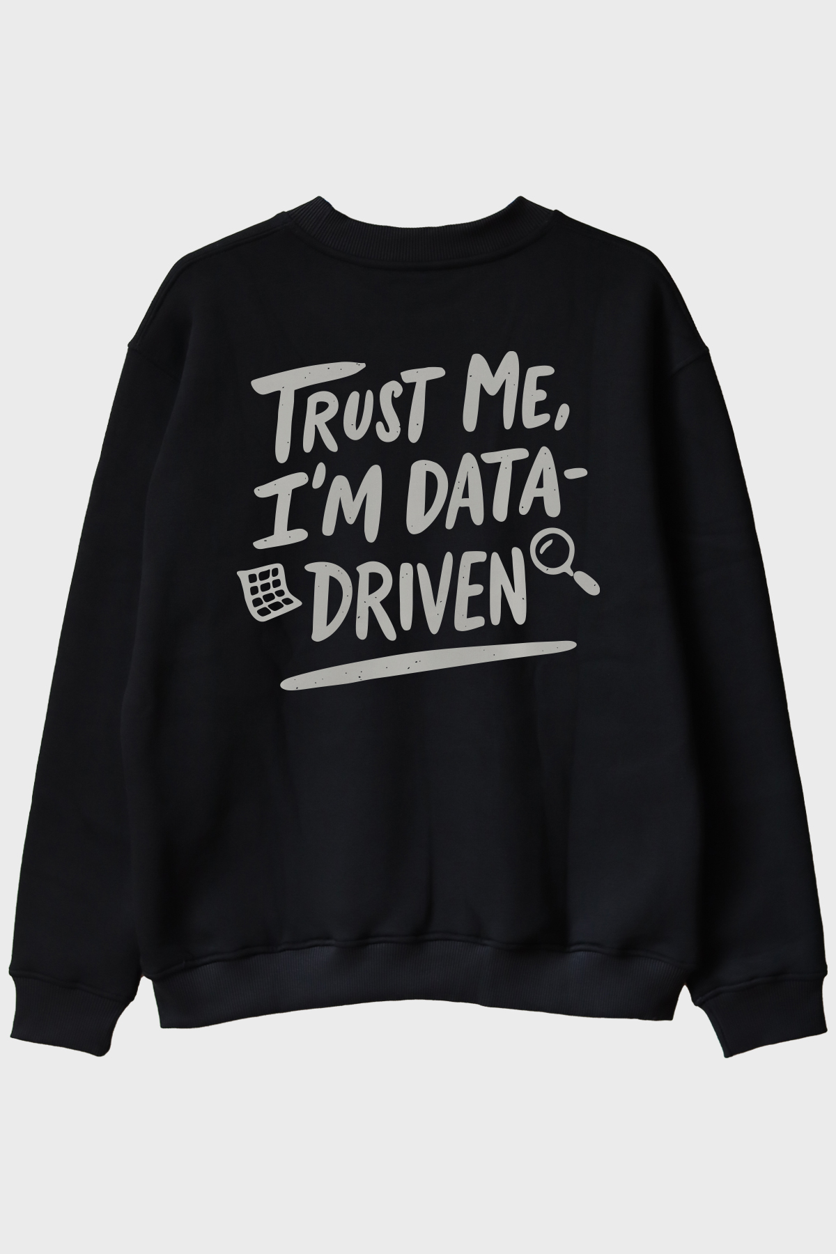 Teknoloji ve veri analitiği dünyasına adım atanlar için tasarlanmış bu özel bisiklet yaka sweatshirt, modern bir stil ile tasarımsal zarafeti bir araya getiriyor. Siyah bisiklet yaka sweatshirt üzerine yerleştirilen beyaz 'Trust Me, I'm Data-Driven' ifadesi, güçlü bir mesajı minimalist bir dizayn ile iletiyor. Her zeka severin ve teknoloji meraklısının gardırobunda olması gereken bu parça, yanındaki şık veri analizi simgeleri ile dikkat çekiyor. Tarzınızı ifade ederken aynı zamanda teknolojiye olan ilginizi de gösteren bu tasarım, IT / TECH kategorisindeki diğer yaratıcı ürünlerle uyum içinde.