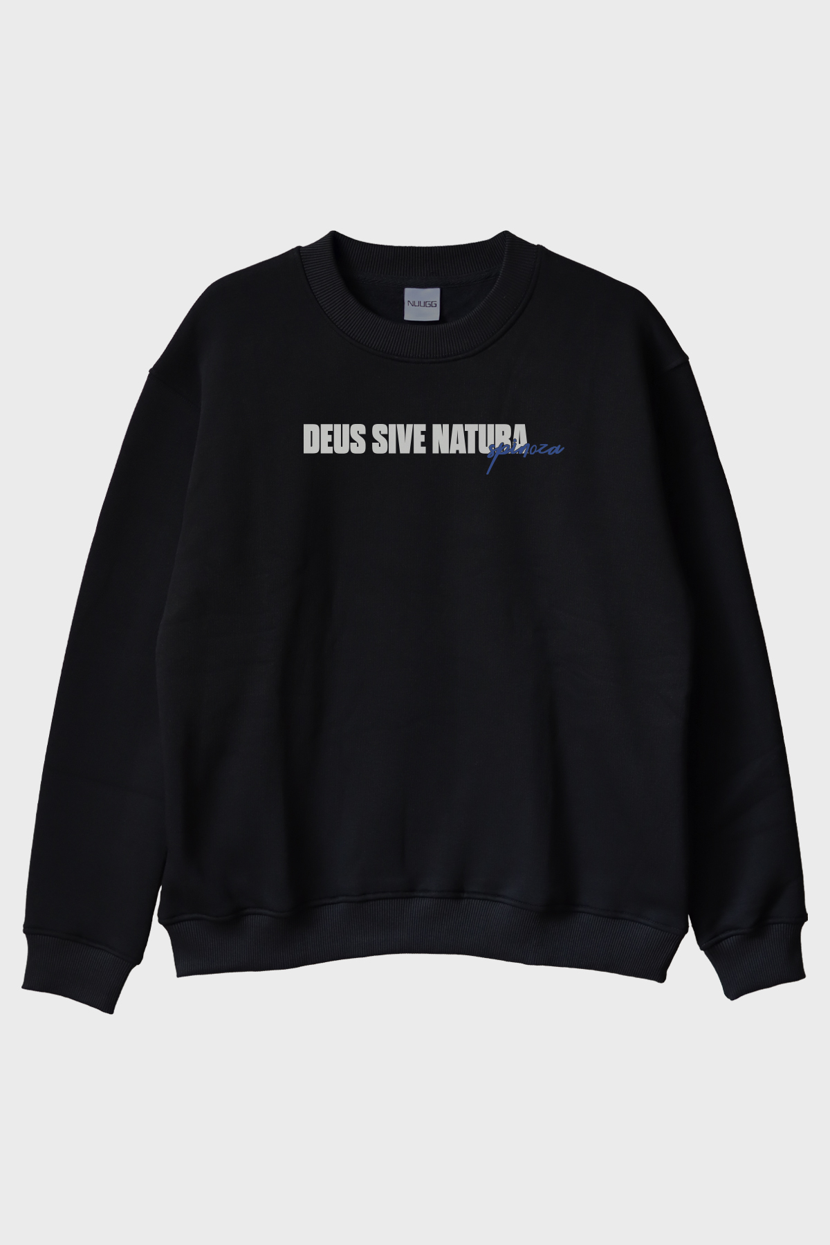 Bu özel tasarım, Diamond Tema işbirliği ile geliştirilmiş olup, felsefe ve teoloji konsepti üzerine inşa edilmiştir. "Deus Sive Natura" ifadesi, Spinoza'nın ünlü felsefi yaklaşımı ile doğaya ve varoluşa farklı bir perspektiften bakmayı mümkün kılıyor. Diamond Tema'nın uzmanlığı ve estetik vizyonu sayesinde, bisiklet yaka sweatshirt üzerinde yer alan tasarım hem göz alıcı hem de düşündürücü bir deneyim sunuyor. Felsefi içerikler ile modayı buluşturduğumuz bu koleksiyonda, diğer parçalarımız gibi bu bisiklet yaka sweatshirtle de tarzınızı en iyi şekilde ifade edebilirsiniz.