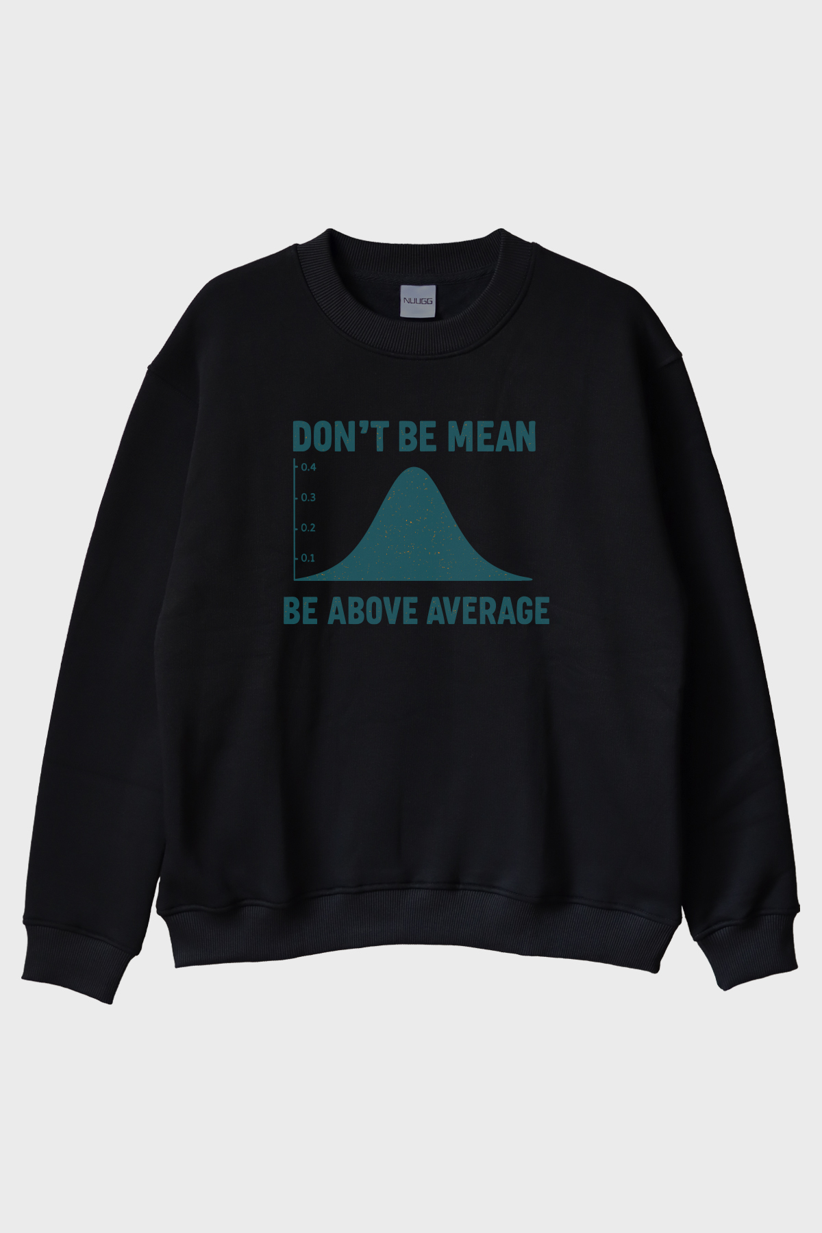 Dont Be Mean Bisiklet Yaka Sweatshirt, benzersiz tasarımı ve eğlenceli mesajı ile dikkat çeken bir parçadır. Üzerinde yer alan "DON'T BE MEAN, BE ABOVE AVERAGE" ifadesi, matematiksel ve istatistiksel bir terimi esprili bir şekilde ele alarak, klasik bir çan eğrisi grafiği ile tamamlanmıştır. Bu bisiklet yaka sweatshirt, Bilim ve Teknoloji alanındaki esprilere ve bilgilere aşina olanlar için ideal bir seçimdir. Aynı zamanda, giyen kişiye entelektüel bir hava katar. Tasarımın amacı, günlük yaşamda sıklıkla karşılaşılan "ortalama" kavramına mizahi bir gönderme yaparak gülümsetmektir. Bisiklet Yaka Sweatshirt, bu yönüyle dikkatleri üzerine çekmek isteyen herkes için mükemmel bir tercihtir.