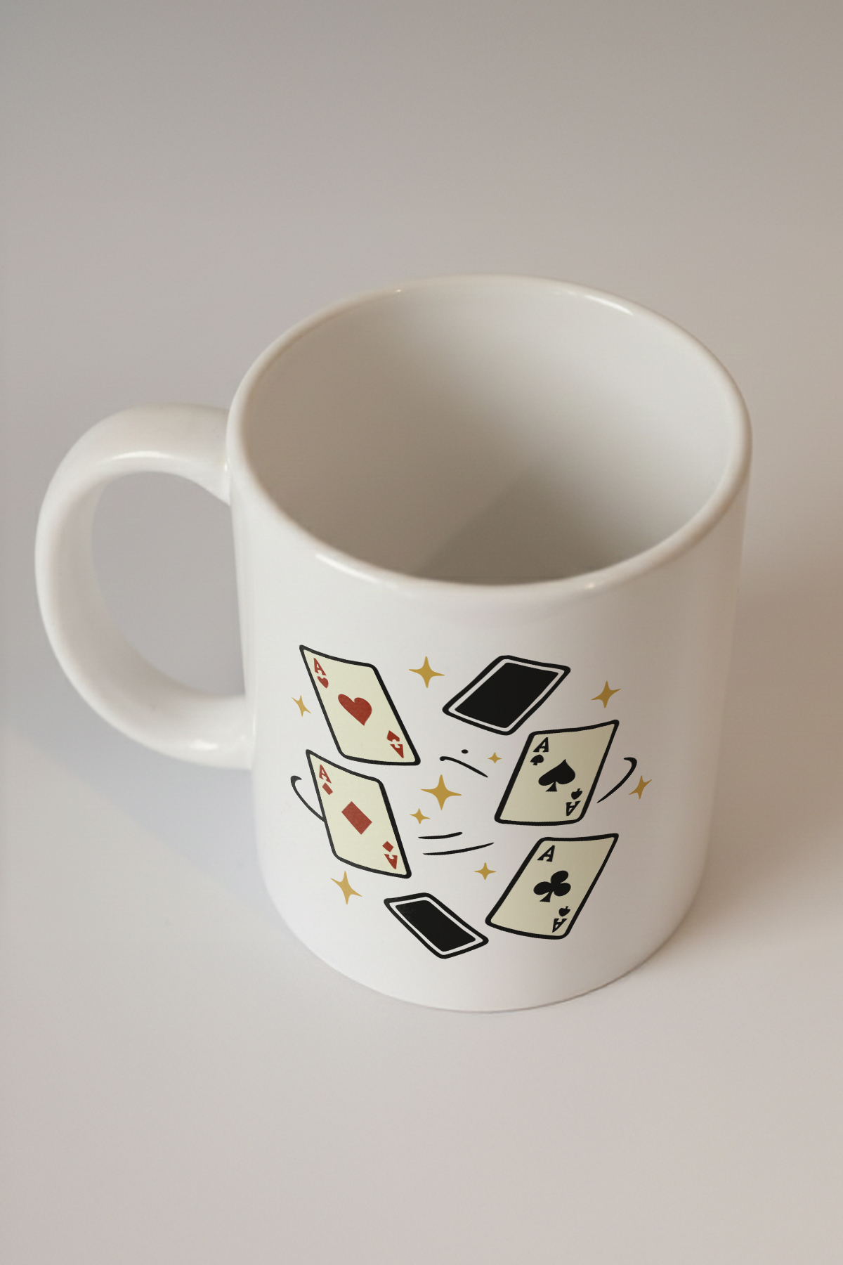 Tasarımın merkezinde yer alan dört as kartı motifi, hem göz alıcı hem de zarif bir görünüm sunuyor. Beyaz yüzeyi sayesinde üzerindeki kart ve yıldız tasarımları daha belirgin bir hale geliyor. Her kartın etrafındaki hareket izleri, dinamik ve enerjik bir his uyandırarak özellikle kart oyunları ve poker tutkunları için cazip bir seçenek haline geliyor. Bu estetik parça, evinizde ya da ofisinizde kullanmak için harika bir aksesuar olabilir ve eşsiz tasarımıyla dikkatleri üzerine çeker.