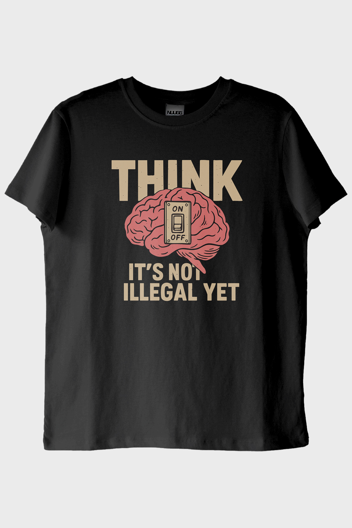 Şartların ve toplumun dayatmalarına karşı çıkan Düşünce Özgürlüğü Mizahi Mesajlı Tişört ile içsel düşüncelerinizi dışa vurun. Üzerinde büyük harflerle cesurca yazılan 'THINK' mesajı, tişörtün ana temasını vurgularken, yanındaki beyin grafiği ve açma kapama düğmesi adeta zihin açıcı bir sembol sunuyor. Altta bulunan 'IT'S NOT ILLEGAL YET' ifadesi ise mizahi bir eleştiri niteliğinde olup, düşünmenin ve sorgulamanın önemi üzerine dikkat çeker. Tasarım, genç ve orta yaş kitlesine hitap ederken, düşünce özgürlüğüne ve mizahi anlatıma değer veren tüm bireylerin favorisi olmaya aday. Eğer siz de bu tişörtü giyerek özgünlüğünüzü ve düşünce özgürlüğünüzü yansıtmak istiyorsanız, bu tasarım sizin için ideal.