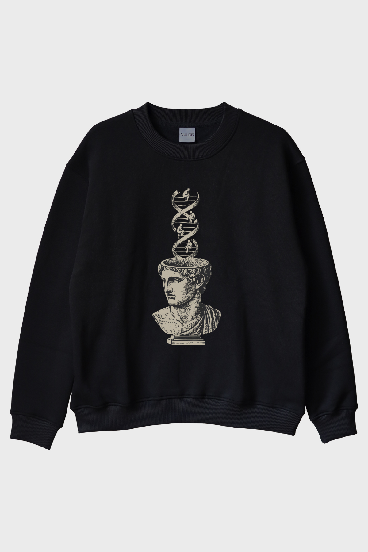 Bu eşsiz bisiklet yaka sweatshirt, her detayında entelektüel bir derinliği ve zarafeti barındırıyor. Tasarımı, antik bir heykel başından çıkan DNA sarmalını görselleştirerek bilimin sanatla iç içe geçmişliğini gözler önüne seriyor. Minimalist bir yaklaşımla dizayn edilen bu bisiklet yaka sweatshirt, hem şıklığı hem de bilimsel temaya olan sadakati ile dikkat çeker. Antik dönem izlerinden ilham alırken, modern çağın bilimsel buluşlarıyla harmanlanan bisiklet yaka sweatshirt, giyen kişiye hem sanatsal hem de bilimsel bir ifade kazandırıyor. Bu eşsiz tasarım, benzersiz bir giyim deneyimi sunarak sanatla bilimi gardırobunuza taşıyor.
