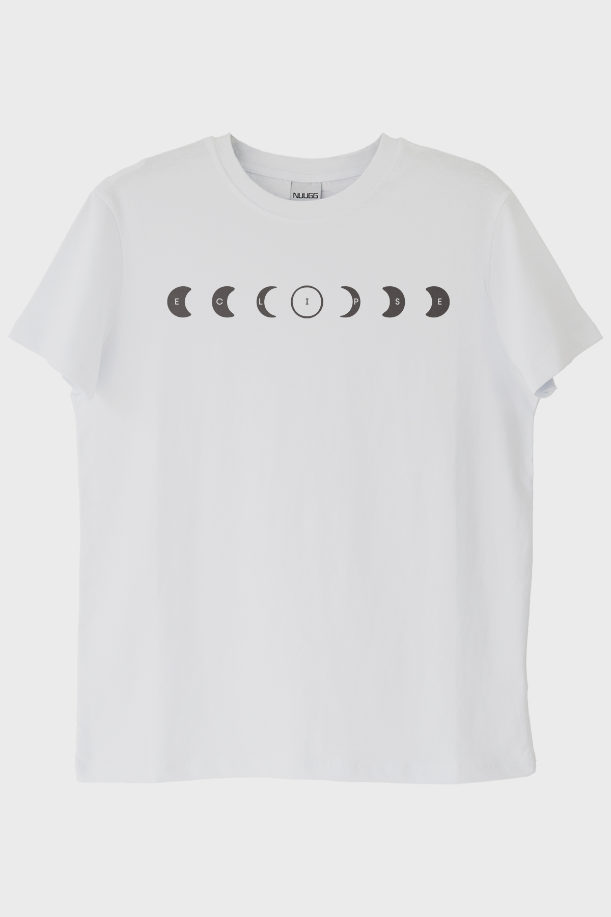 ECLIPSE Ay Evreleri Tasarımı Siyah Beyaz Tişört