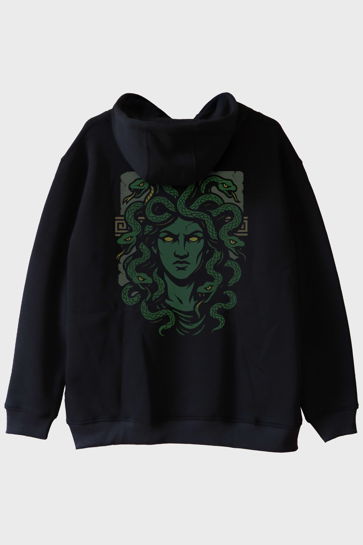 Efsanevi Medusa Hoodie, cesur ve etkileyici tasarımıyla dikkat çekiyor. Üzerindeki Medusa illüstrasyonu, mitolojik hikayelerde korku ve hayranlık uyandıran bu ikonik figürü üzerinde taşıma fırsatı sunuyor. Saçları yılanlarla bezeli, güçlü ve karizmatik Medusa'nın bu detayı, hoodieü sıradan tasarımlardan ayırıyor. Her bir detayı özenle işlenmiş olan tasarım, özellikle mitolojiye ilgi duyan sanatseverler için kaçırılmaz bir parça. Bu ürünü giymek, sadece bir kıyafet tercihi değil, aynı zamanda bir mitolojik figürü bir yaşam tarzı olarak benimsemek anlamına geliyor. Eşsiz tasarımıyla dolabınızın en gözde parçası olmaya aday.