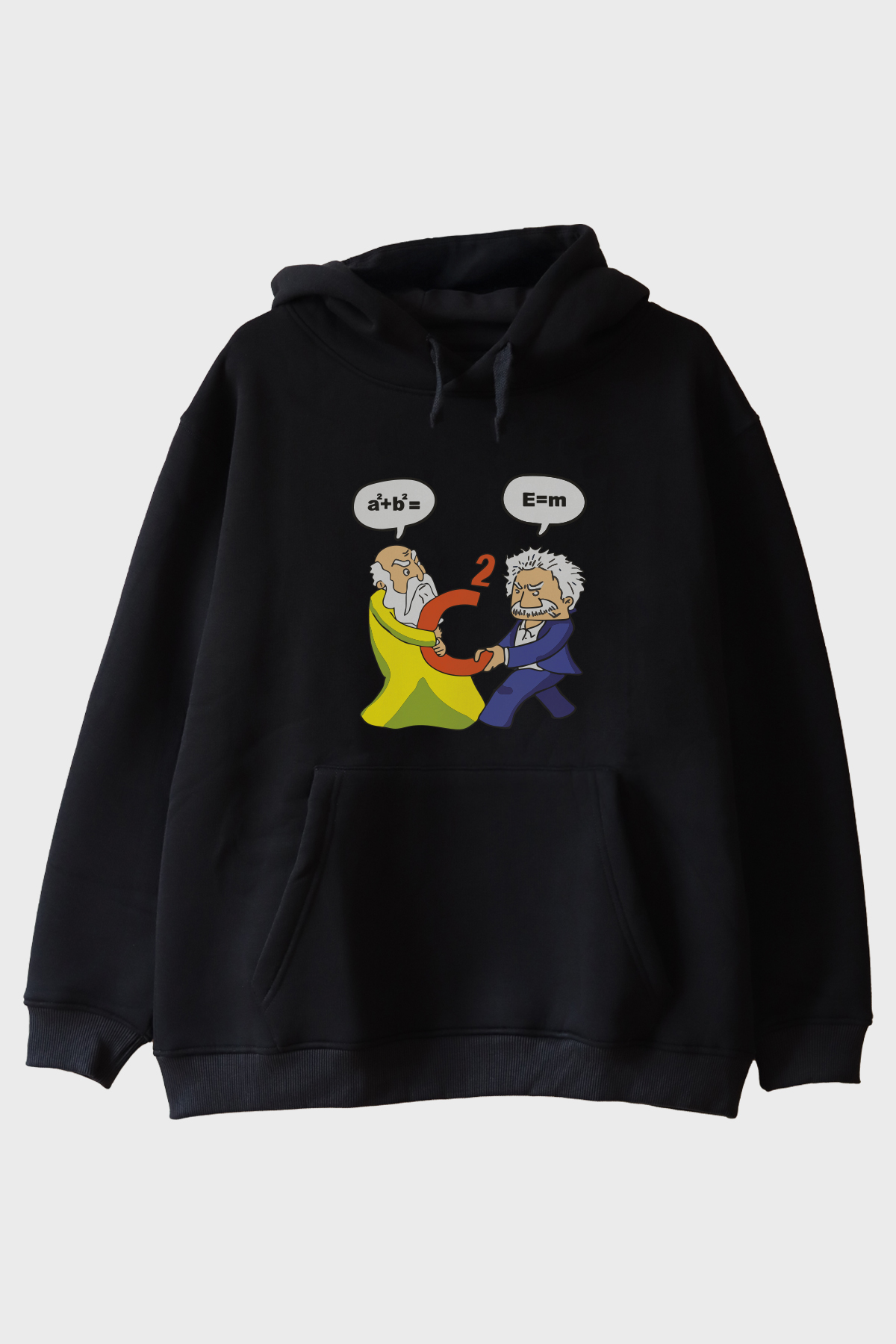 Einstein ve Pisagor'un zihin açıcı ve espirili çekişmesi şimdi gardırobunuzda yerini alıyor! "Einstein Pisagor Hoodie", her iki dahinin formüller üzerinden eğlenceli bir kapışmaya tutuştuğu göz alıcı bir tasarımı sizlere sunuyor. Genç yetişkinlerin sevgisini kazanacak bu karikatür tarzı hoodie, bilimle mizahı harmanlayan tarzıyla dikkat çekiyor. Eğlenceye yeni bir boyut kazandıracak olan bu hoodie, mizahi dokunuşları ile bilim ve teknoloji tutkunlarının kalbini fethetmeye aday. Eğlenceli çizgileri ve zekice düşünülmüş sahneleriyle, bu hoodie tam anlamıyla 'giyilebilir mizah' sunuyor.