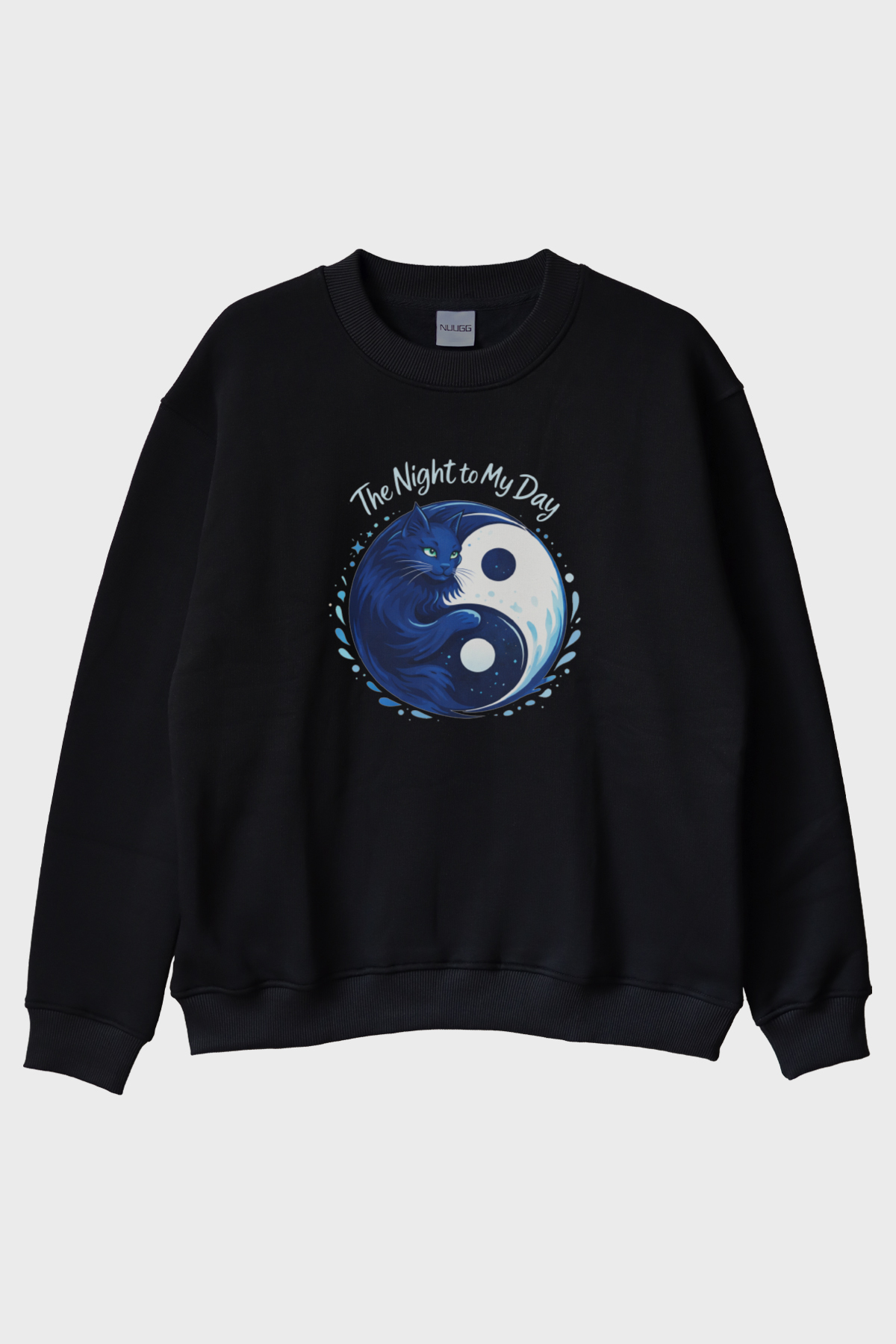 Gece ve Gündüz Çift Bisiklet Yaka Sweatshirtü, hem sanatsal hem de duygusal bir dokunuşla romantizmi vurgular. Yin yang simgesinin ortasına yerleştirilmiş kedi figürleriyle tasarlanmış bu kreasyon, siyah ve beyaz renklerin dengeli kontrastını yansıtır. Gece ve gündüzün mükemmel uyumu ile tasarlanan bu eşsiz çift giysisi, anlam dolu bir hediye seçeneği sunar. Tasarımıyla partnerinizle olan bağınızı sembolize eden bu ürün, sevdikleriniz için hoş ve düşünceli bir jest olabilir. Love kategorisinden daha fazla romantik hediye seçeneğine ulaşabilirsiniz.