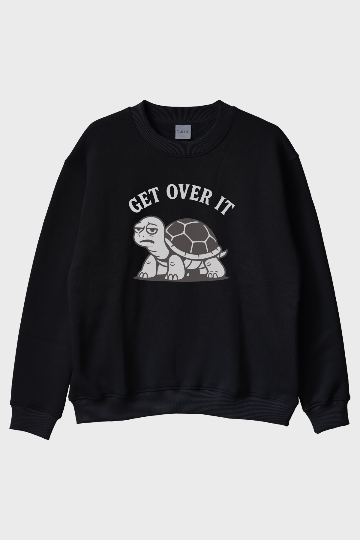 GET OVER IT Kaplumbağa Baskılı Bisiklet Yaka Sweatshirt