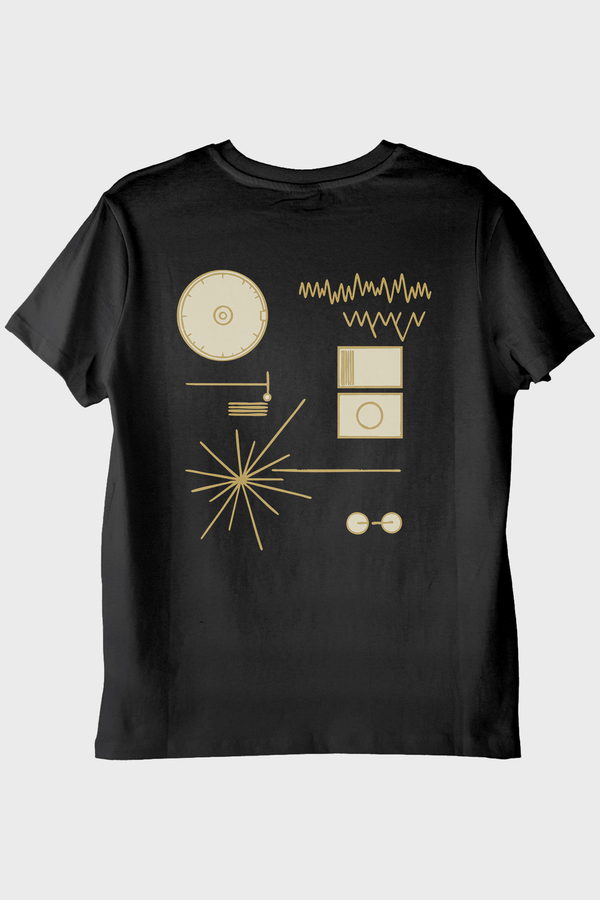 Golden Record Uzay Temalı Minimalist Bilim Siyah Tişört