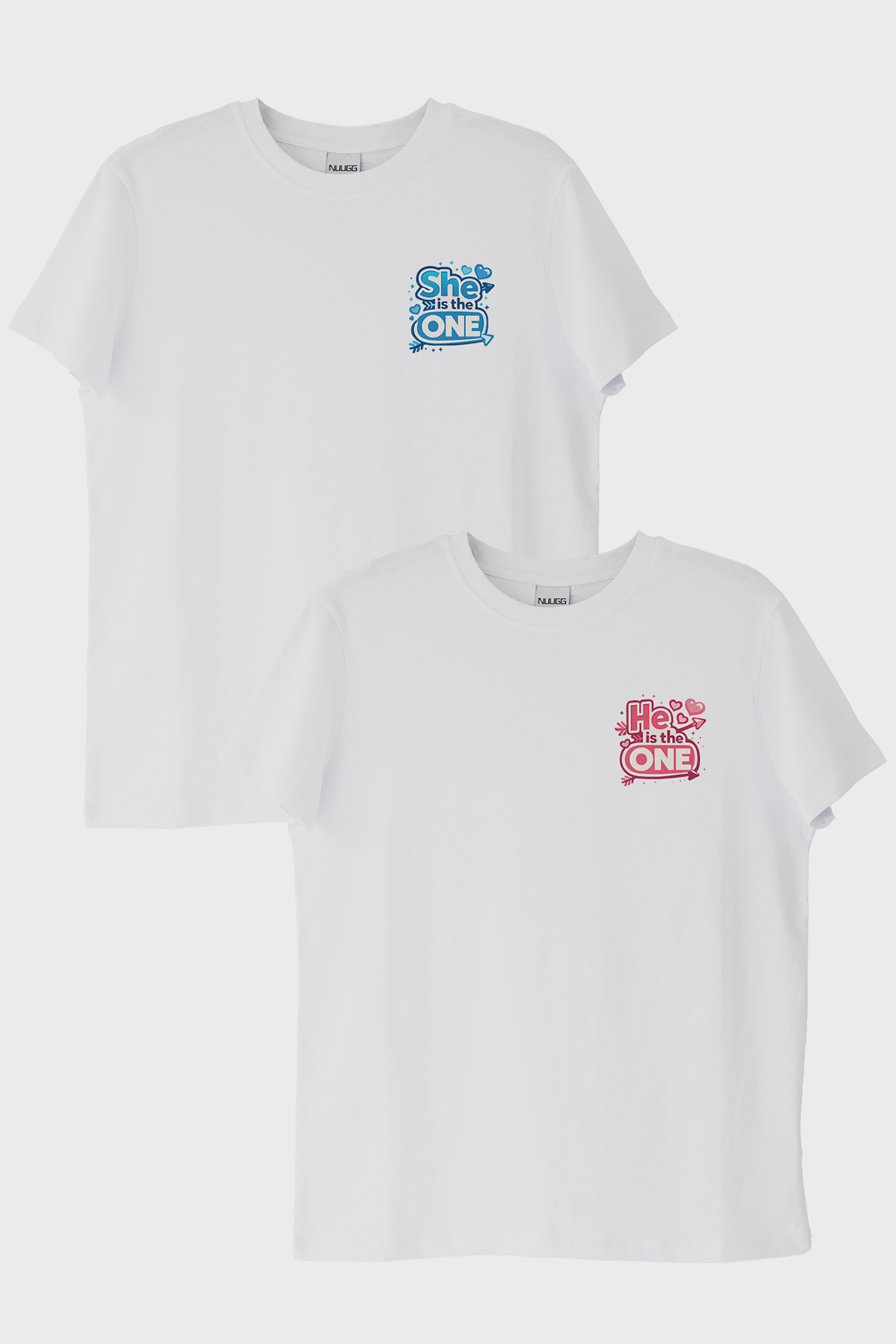 He is the One - She is the One Çift Beyaz Tişörtleri