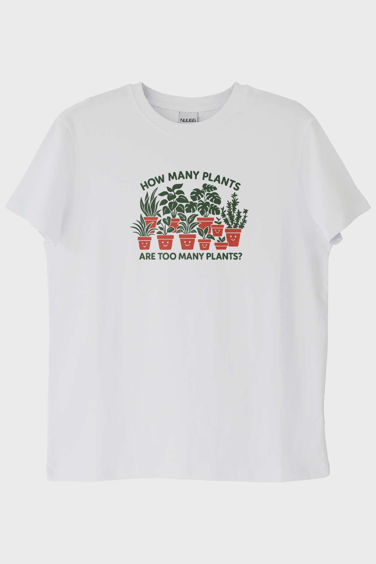 Tasarım dünyasını mizahi bir dille bir araya getiren bu eşsiz tişört, bitki severlerin ilgisini çekecek nitelikte. Üzerinde 'HOW MANY PLANTS ARE TOO MANY PLANTS?' yazısı ve çeşitli saksılarda tasvir edilen farklı bitki desenleri bulunmaktadır. Kırmızı tonlarındaki sevimli saksılar, yeşil tonlarda hayat bulan bitkilerle birleştiğinde, siyah arka planın üzerinde etkileyici bir kontrast oluşturur.