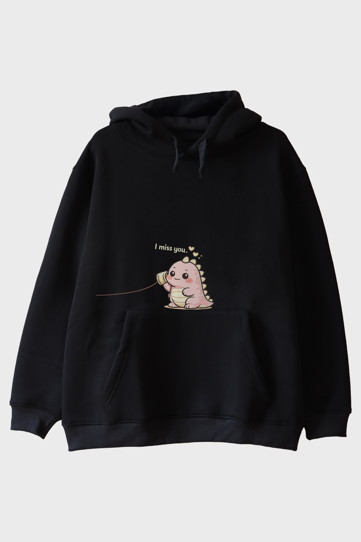 Günlük giyiminize biraz sevimlilik katmak ister misiniz? O halde 'I Miss You Dinozor Hoodie' tam size göre! Üzerinde telefonla konuşan koca gözlü bir dinozor karakteri bulunan bu giyside, renkler ve detaylar uyum içinde bir araya geliyor. Dinozorun yanında 'I miss you' yazısı özenle yerleştirilmiş ve etrafı kalp sembolleri ile süslenmiş. Bu tasarım, sevgiyi ve özlemi tarzınızla ifade etmenize olanak tanıyan tatlı bir dokunuş. I Miss You Dinozor Hoodie, hem eğlenceli hem de duygusal bir mesajla gününüzü aydınlatacak. Tarzınızı yansıtırken, sevdiklerinizi de düşündüğünüzü göstermek için daha iyi bir seçim düşünemezsiniz.