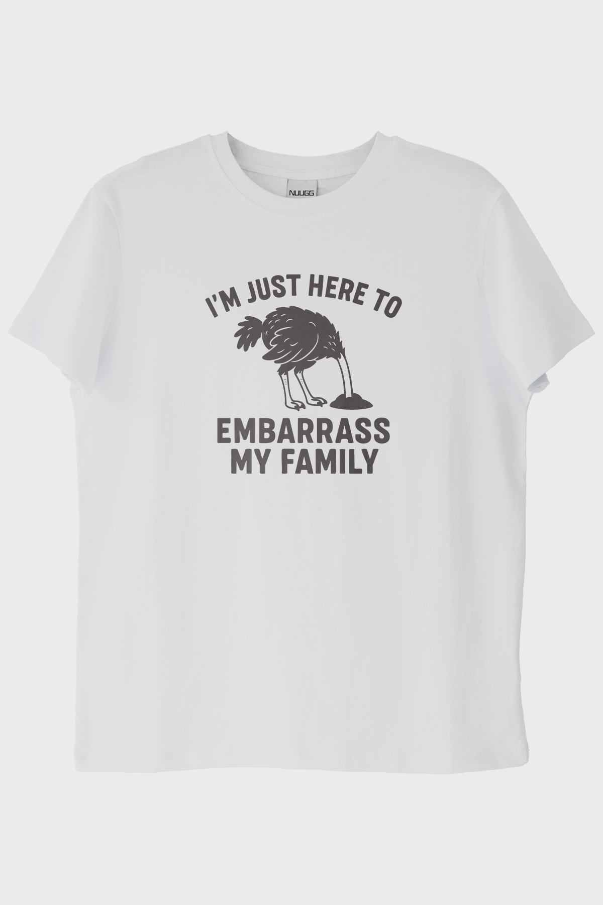 I'm Just Here to Embarrass My Family Baskılı Beyaz Tişört