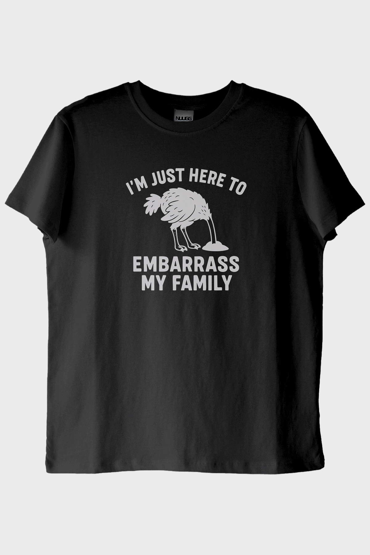 I'm Just Here to Embarrass My Family Baskılı Siyah Tişört