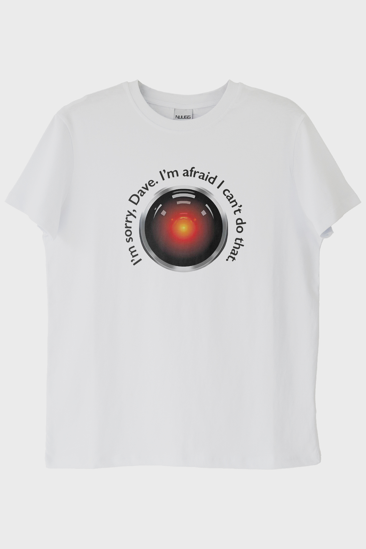 Bilimkurgu ve teknoloji hayranları için özel olarak tasarlanan bu tişört, dikkat çekici ve anlamlı bir tasarımı üstünde barındırıyor. Beyaz zemine siyah ve kırmızı tonları ile basılmış olan bu tasarım, ünlü bir bilimkurgu filmine atıfta bulunarak, "I'm sorry, Dave. I'm afraid I can't do that." ifadesini içermekte. Merkezde yer alan kırmızı ışıklı dairenin çevresinde, mesaj retro bilimkurgu temasına vurgu yaparak, minimal ama etkileyici bir görünüm sunuyor.