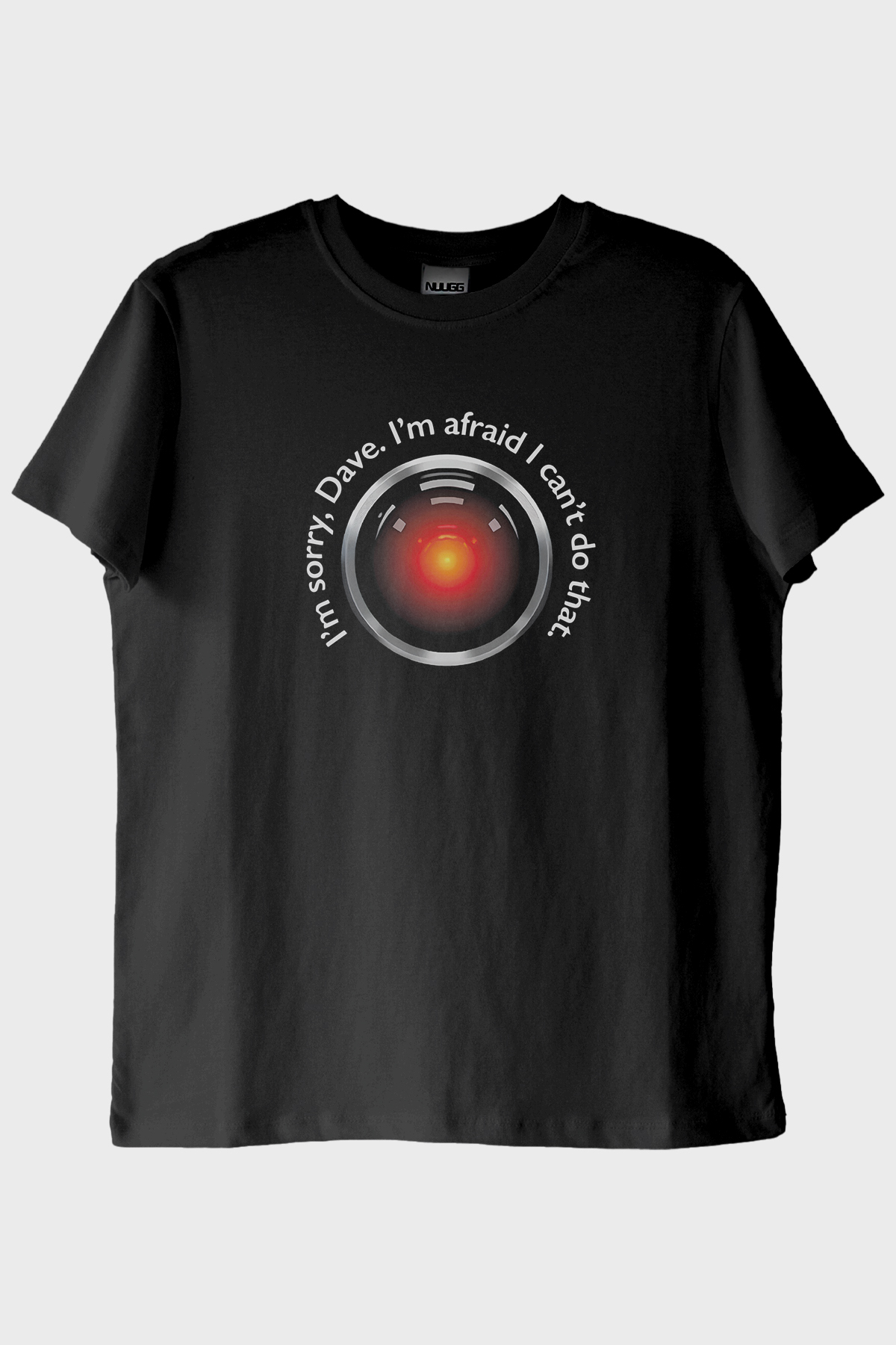 Bilimkurgu ve teknoloji hayranları için özel olarak tasarlanan bu tişört, dikkat çekici ve anlamlı bir tasarımı üstünde barındırıyor. Beyaz zemine siyah ve kırmızı tonları ile basılmış olan bu tasarım, ünlü bir bilimkurgu filmine atıfta bulunarak, "I'm sorry, Dave. I'm afraid I can't do that." ifadesini içermekte. Merkezde yer alan kırmızı ışıklı dairenin çevresinde, mesaj retro bilimkurgu temasına vurgu yaparak, minimal ama etkileyici bir görünüm sunuyor.