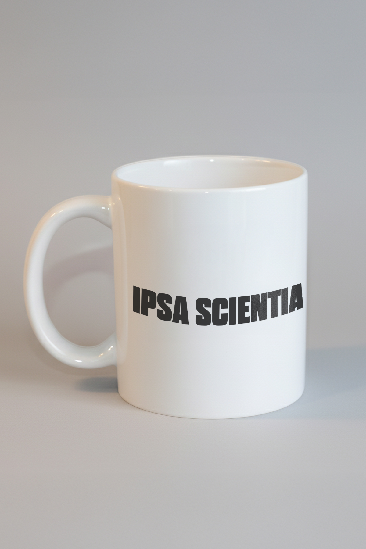 Beyaz zemin üzerinde zarif bir şekilde işlenmiş 'IPSA SCIENTIA' yazısıyla dikkat çeken bu eşsiz tasarım, minimalizmi şıklıkla birleştiriyor. Bilim tutkunları ve bilgiye değer verenler için tasarlanan bu kupanın, bulunduğunuz ortama entelektüel bir hava kattığını hemen fark edeceksiniz. Estetik görünümüyle sadece bir içecek kabı değil, aynı zamanda masanızda bir aksesuar görevini de üstlenir. Bilim ve sanatın kesişim noktasında yer alan bu benzersiz parça, her yudumda size ilham verici bir deneyim sunar.