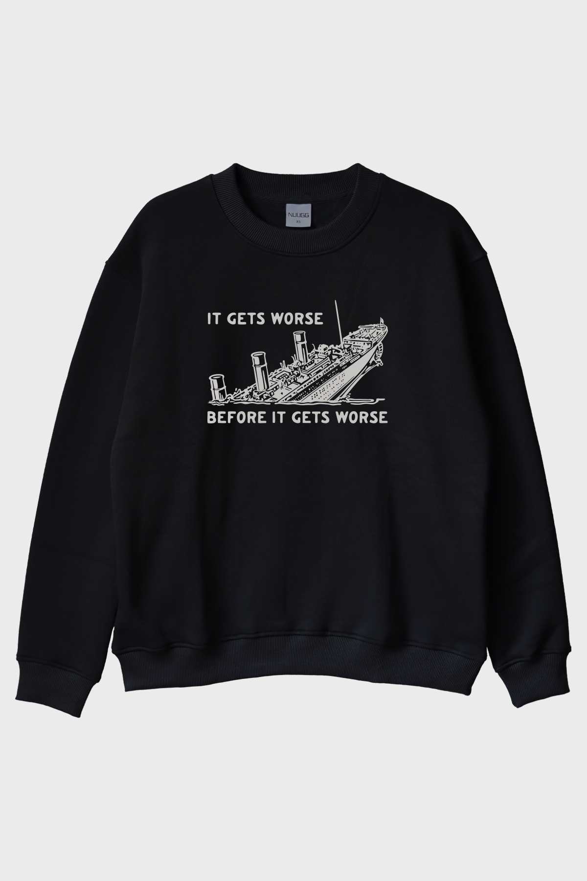 It Gets Worse Baskılı Tasarım Siyah Bisiklet Yaka Sweatshirt