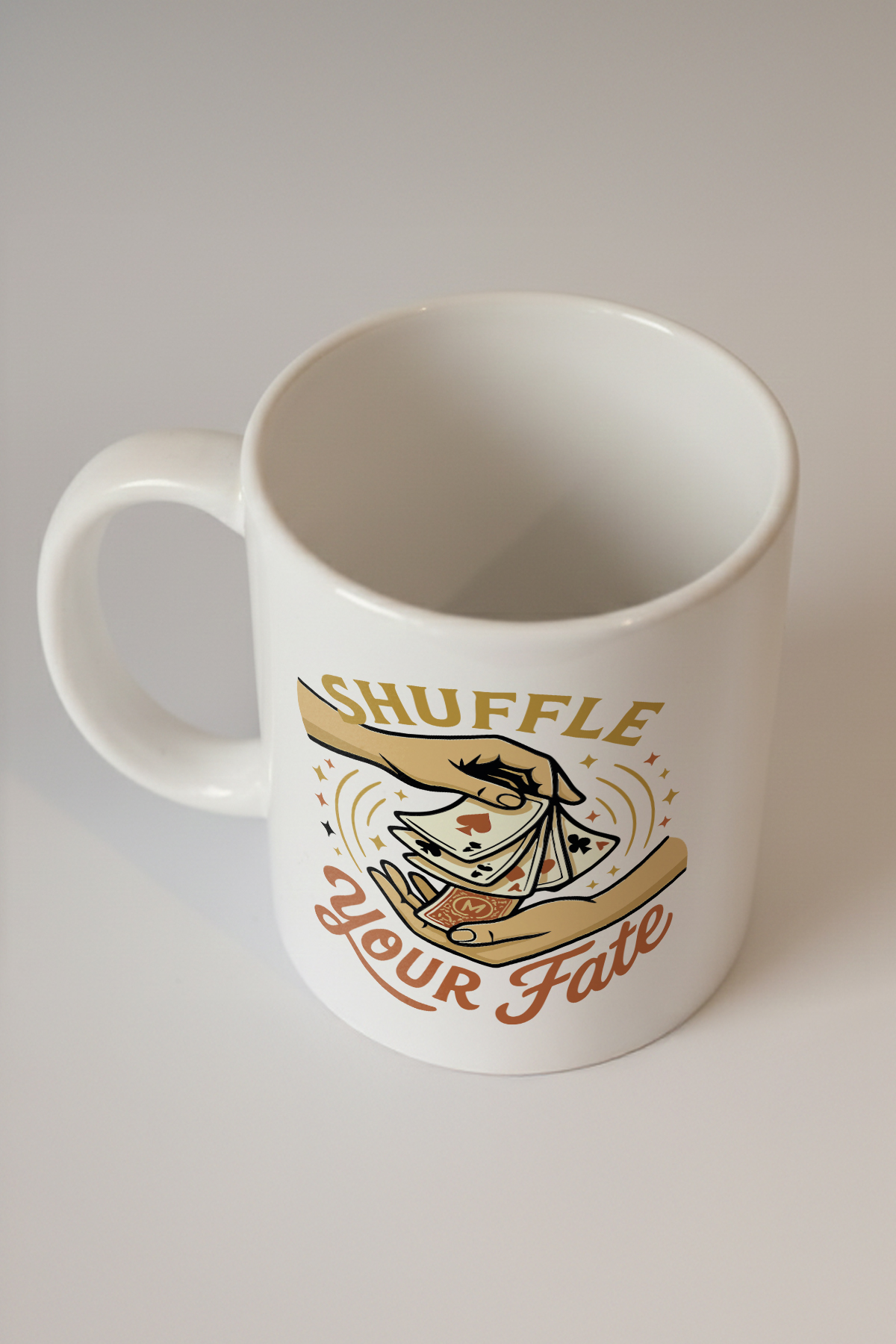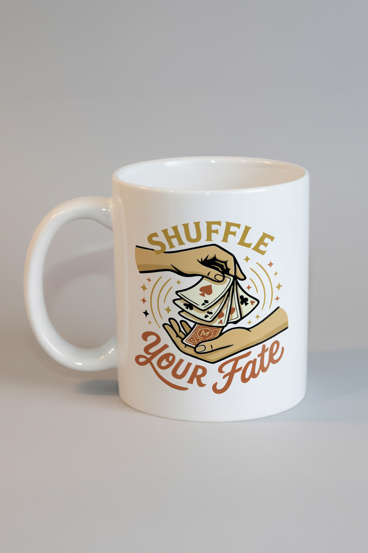 "Kaderini Karıştır" adlı özel tasarımlı kupa, her sabah çayınızdan ya da kahvenizden yudum alırken size benzersiz bir deneyim sunar. Ürün, kart destesi karıştıran eller grafiği ve 'Shuffle Your Fate' sloganıyla dikkat çekiyor. Üzerinde yer alan çeşitli kart sembolleri ve yıldızlar, tüm kumar ve kader temasını başarılı bir şekilde hissettiriyor. Tarz ve teması itibariyle özellikle kart oyunları ve şans öğelerine ilgi duyan kişilere hitap eden bu ürün, hayatınıza biraz heyecan katmak için mükemmel bir seçim olabilir. Eşsiz ve göz alıcı dizaynı sayesinde bu kupa, sıradan öğeleri sanatsal bir dokunuşla zenginleştiriyor.