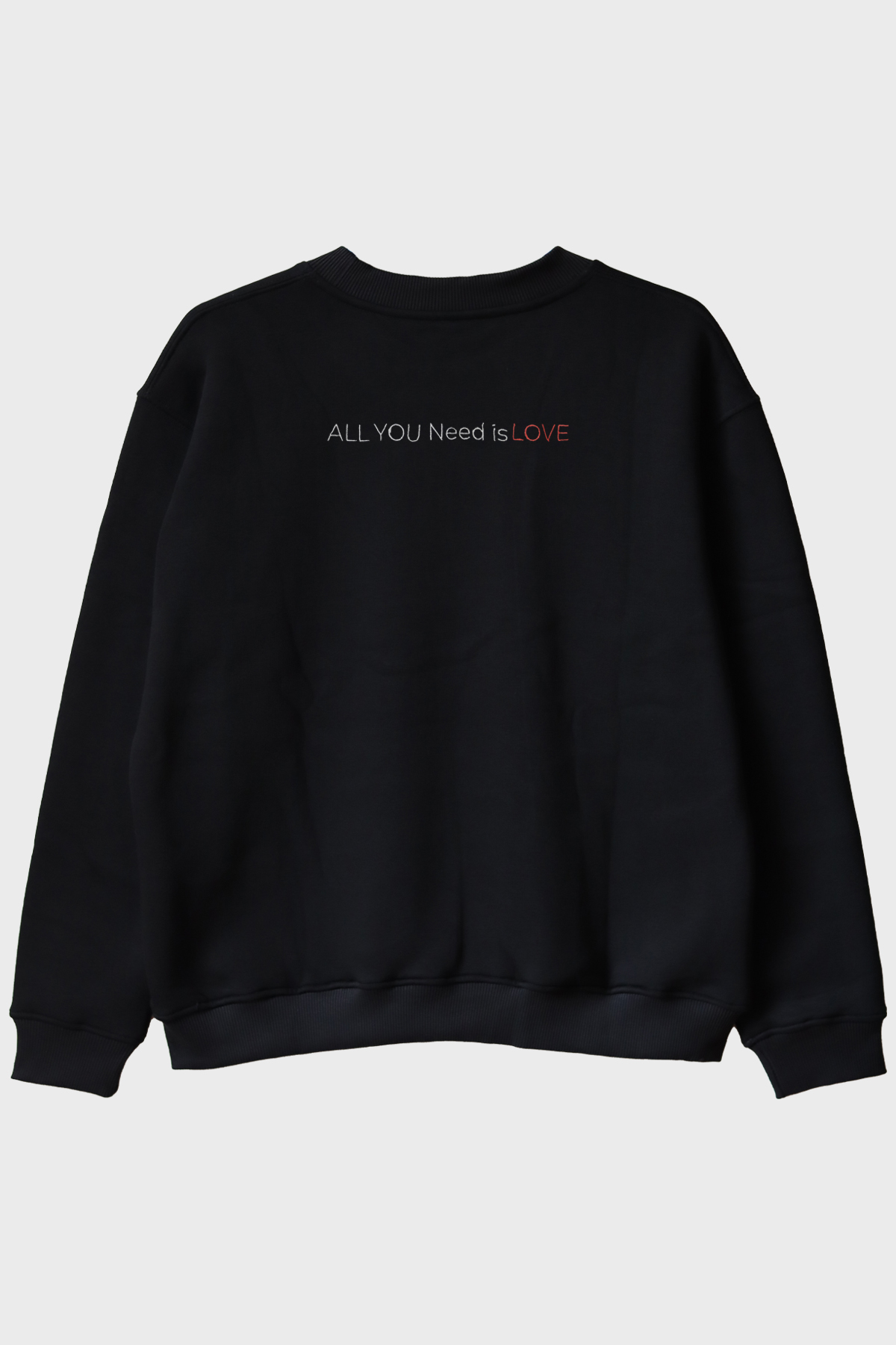 Ön yüzünde şık bir kalp desenine sahip olan bu bisiklet yaka sweatshirt, Sevgililer Günü için anlamlı bir hediye seçeneğidir. Arka kısmında ise "All You Need Is Love" yazısı boydan boya yer alır, sevgi dolu bir mesaj verir. Bu tasarım, basit ama etkileyici bir şekilde sevginizi ifade eder ve romantik bir şıklık yaratır. Hem şıklığı hem de anlamıyla, bu bisiklet yaka sweatshirt sevgilinizle uyumlu giyebileceğiniz harika bir üründür.