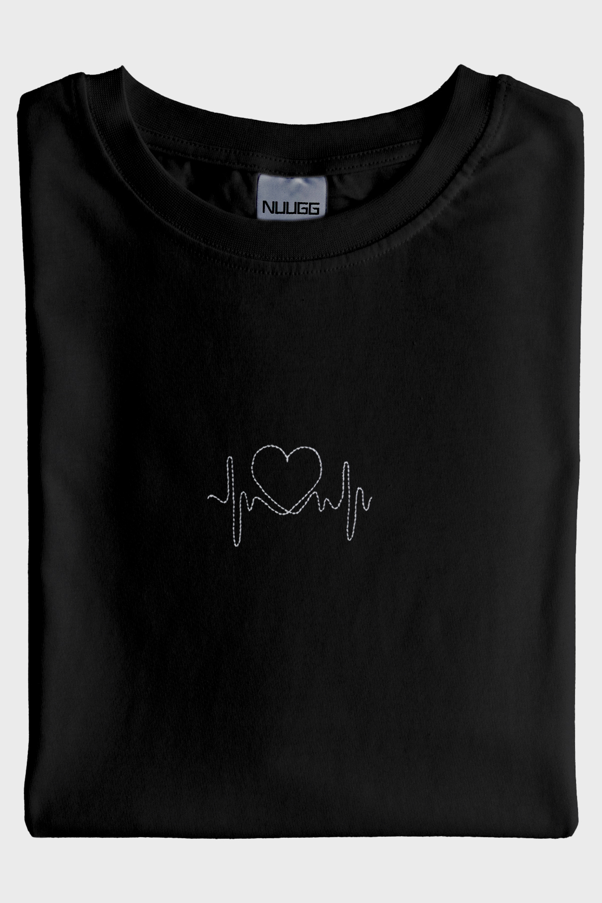 %100 pamuk kumaştan üretilen bu tişört, rahat ve nefes alabilir bir yapıya sahip olup, uzun süre dayanıklı ve konforludur. Kumaşının yumuşak dokusu sayesinde gün boyu rahat bir kullanım sunar. Kalp atışı deseni ve ortadaki kalp işçiliği ise tişörtün her yönüyle zarif bir görünüm kazanmasını sağlar. Sade ve şık tasarımı, Sevgililer Günü ve diğer özel günler için harika bir hediye alternatifi oluşturur.