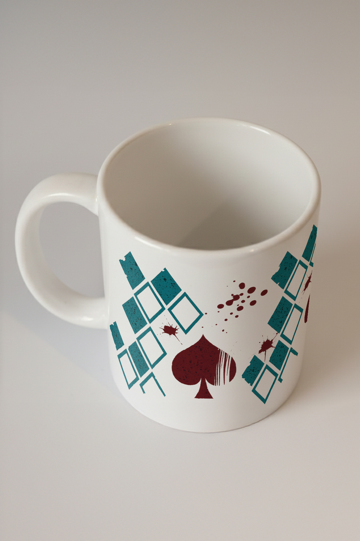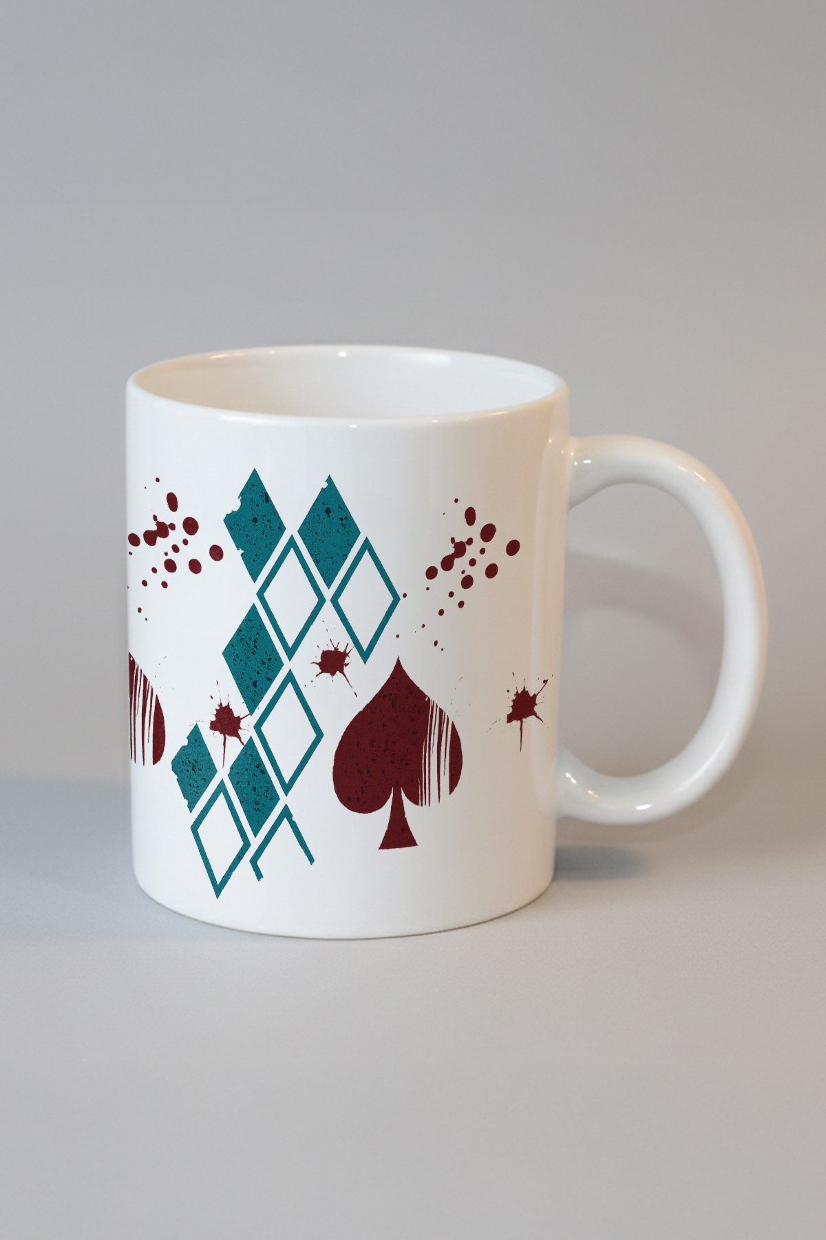 Kaos ve Şans Kupa, göz alıcı tasarımıyla dikkat çeken estetik bir ürün olarak karşınıza çıkıyor. Bu özel tasarım, yeşil elmas desenleri ve bordo renkli iskambil maça figürü ile harmanlanarak ortaya konulmuştur. Tasarımı tamamlayan bordo mürekkep sıçramaları, sanatsal bir tablonun tuvale yansımasını andırırken, ürüne benzersiz ve modern bir görünüm kazandırmaktadır. Sanatla iç içe olan ve fark yaratan bir stil arayışındaki kişilere hitap eden bu tasarım, aynı zamanda modern ve cesur bir görünüm sunmaktadır.