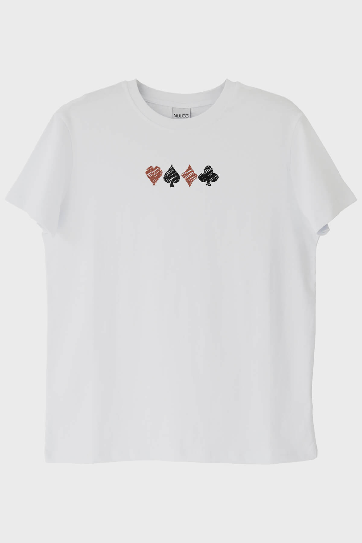 Kart Sembolleri Tişörte sahip olmak oldukça kolay. Online alışveriş platformumuzda sipariş verdikten sonra, hızlı kargo seçeneği sayesinde kısa sürede adresinize ulaşacaktır. Bakım konusunda da oldukça pratik olan bu ürün, makinede yıkanabilir ve kolayca ütülenebilir. Renklerin ve tasarımın uzun ömürlü kalması için düşük ısıda yıkanmasını ve ters çevrilerek ütülenmesini tavsiye ediyoruz. Tüm bu avantajlar, bu ürünü seçerken size ekstra güvence sağlar.