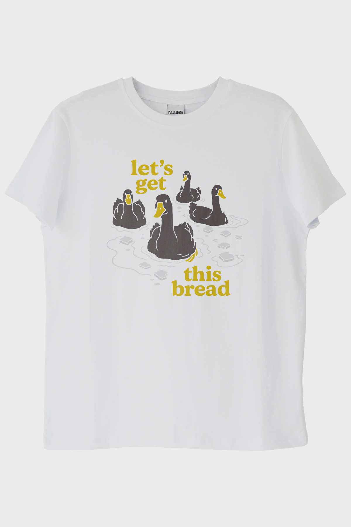 Modanın espri ile buluştuğu Let’s Get This Bread Tasarım Tişört, günlük stilinizi eğlenceli hale getiriyor. Beyaz zemin üzerine tasarlanan bu ürünün ön kısmında, mizahi bir söylem ve ilgi çekici grafikler yer alıyor. Üst kısımda 'let’s get', alt kısımda ise 'this bread' yazılı slogan dikkatleri üzerine çekiyor. Arka planda ise, suda yüzen siyah ördek figürleri ve onların etrafında görülen ekmek parçaları bulunuyor. Sarı, siyah ve gri tonlarının uyumlu kombinasyonu ise tişörtü hem modern hem de göz alıcı bir hale getiriyor.
