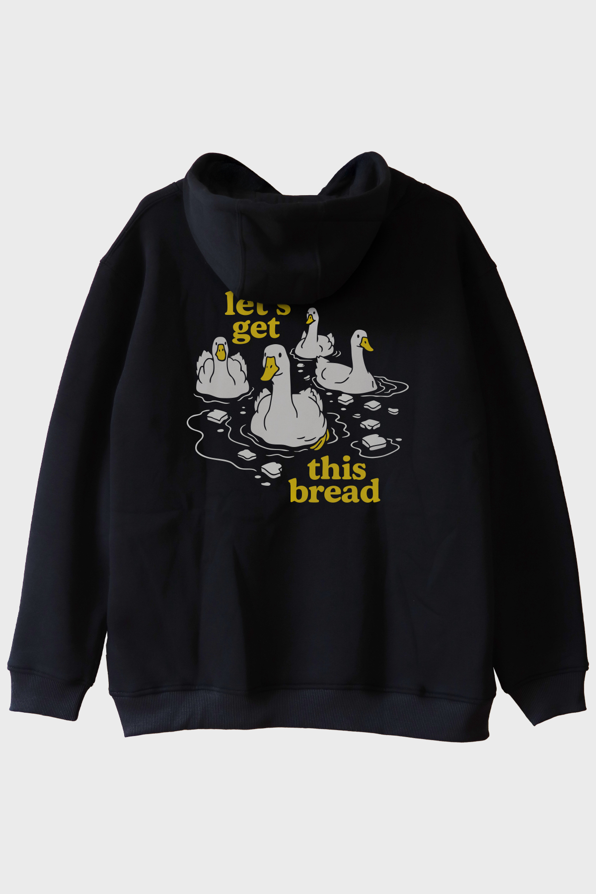 Modanın espri ile buluştuğu Let’s Get This Bread Tasarım Hoodie, günlük stilinizi eğlenceli hale getiriyor. Beyaz zemin üzerine tasarlanan bu ürünün ön kısmında, mizahi bir söylem ve ilgi çekici grafikler yer alıyor. Üst kısımda 'let’s get', alt kısımda ise 'this bread' yazılı slogan dikkatleri üzerine çekiyor. Arka planda ise, suda yüzen siyah ördek figürleri ve onların etrafında görülen ekmek parçaları bulunuyor. Sarı, siyah ve gri tonlarının uyumlu kombinasyonu ise hoodieü hem modern hem de göz alıcı bir hale getiriyor.