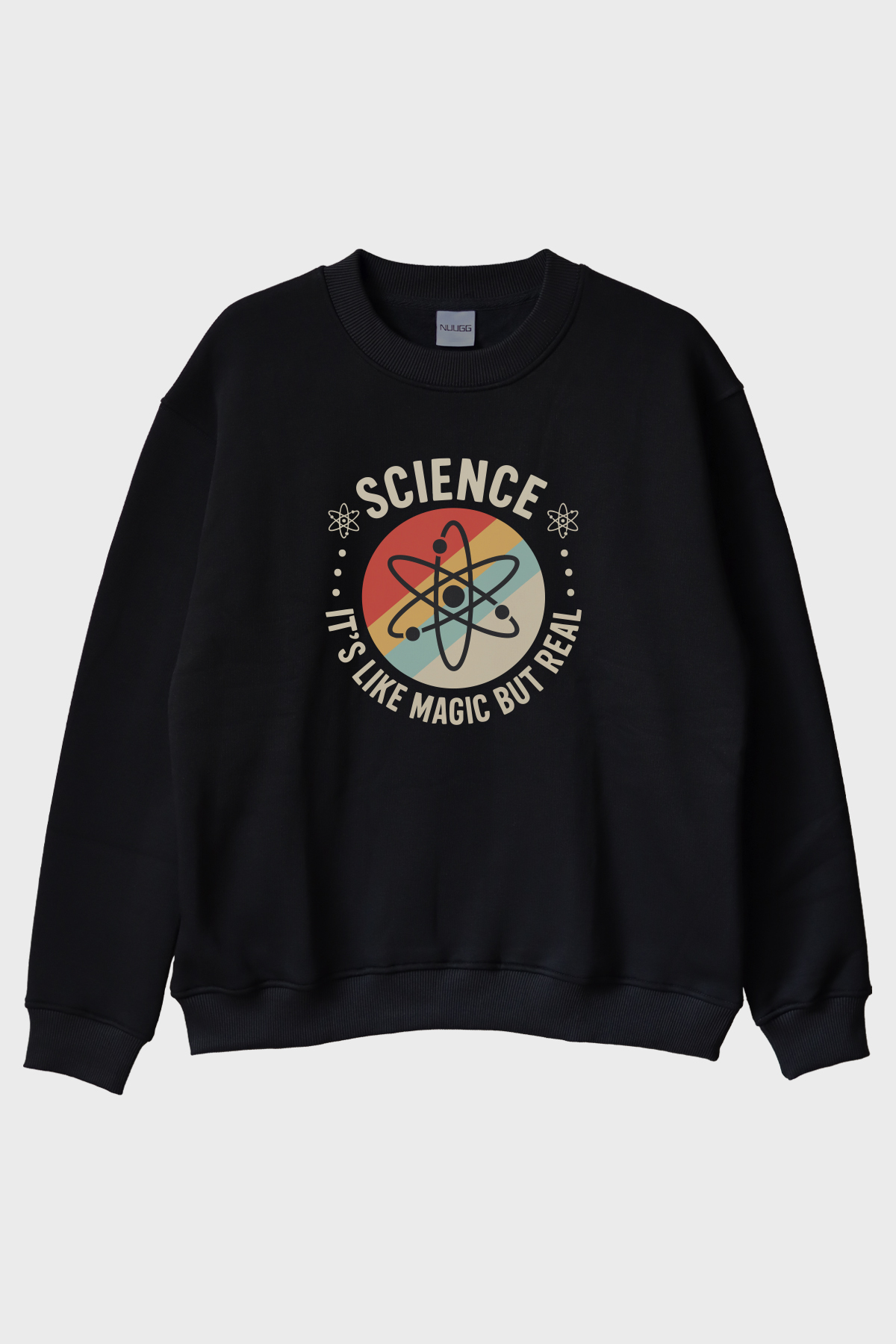 Magic Science Bisiklet Yaka Sweatshirt, bilim ve tasarım tutkunlarını büyüleyen özel bir parça. Ürünün göğüs kısmında yer alan atom grafik tasarımı ve "Science It's Like Magic But Real" yazısı, adeta bilimle harmanlanmış bir sanat eseri niteliğinde. Bu retro tarzda bisiklet yaka sweatshirt, bilim ve teknoloji meraklılarına hitap eden, hem eğlenceli hem de düşündürücü bir mesaj taşıyor. Yenilikçi ve geçmişle uyumlu bir stil sunan tasarımıyla bu bisiklet yaka sweatshirt, kıyafet dolabınızda eksik olmaması gereken bir parça. Özellikle bilim sever arkadaşlarınıza hediye olarak düşünebileceğiniz bu bisiklet yaka sweatshirt, herkesin ilgisini çekmeyi başaracak türden.