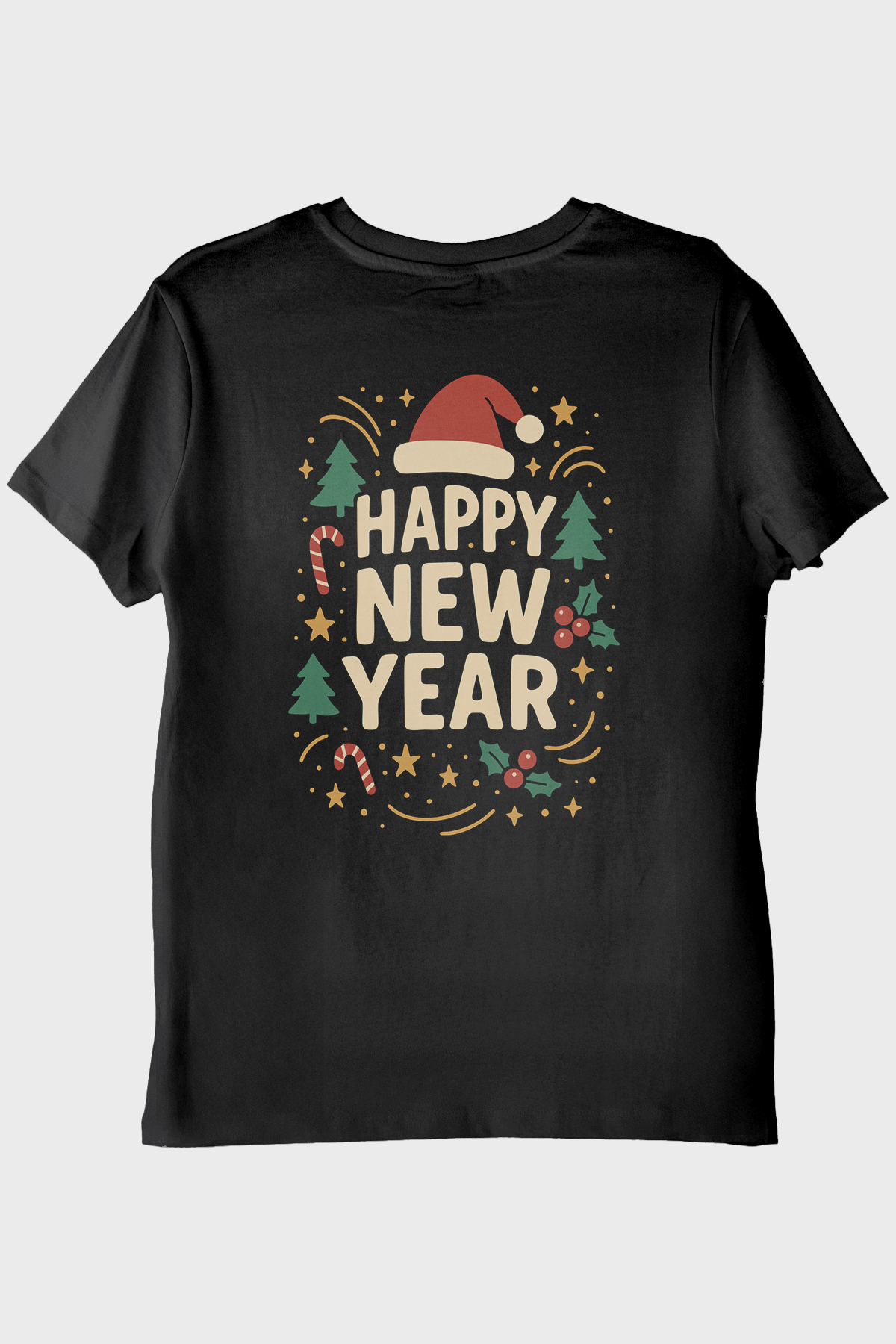 Mutlu Yılbaşı Tişört, yılbaşı ruhunu en etkileyici şekilde yansıtmak için tasarlanmıştır. Sağ göğüs kısmında yer alan "Happy New Year" yazısı, yılbaşı ruhunu yansıtan renkli süslemelerle dikkat çeker. Küçük çam ağaçları ve havai fişek motifleri, tasarımın neşeli atmosferini daha da pekiştirir ve canlı renkleriyle hemen göze çarpar. Yılın bu özel döneminde giydiğinizde, etrafınızdaki herkesin gülümsemesini sağlayacak ve yılbaşı coşkusunu paylaşmanıza yardımcı olacak bir seçimdir.