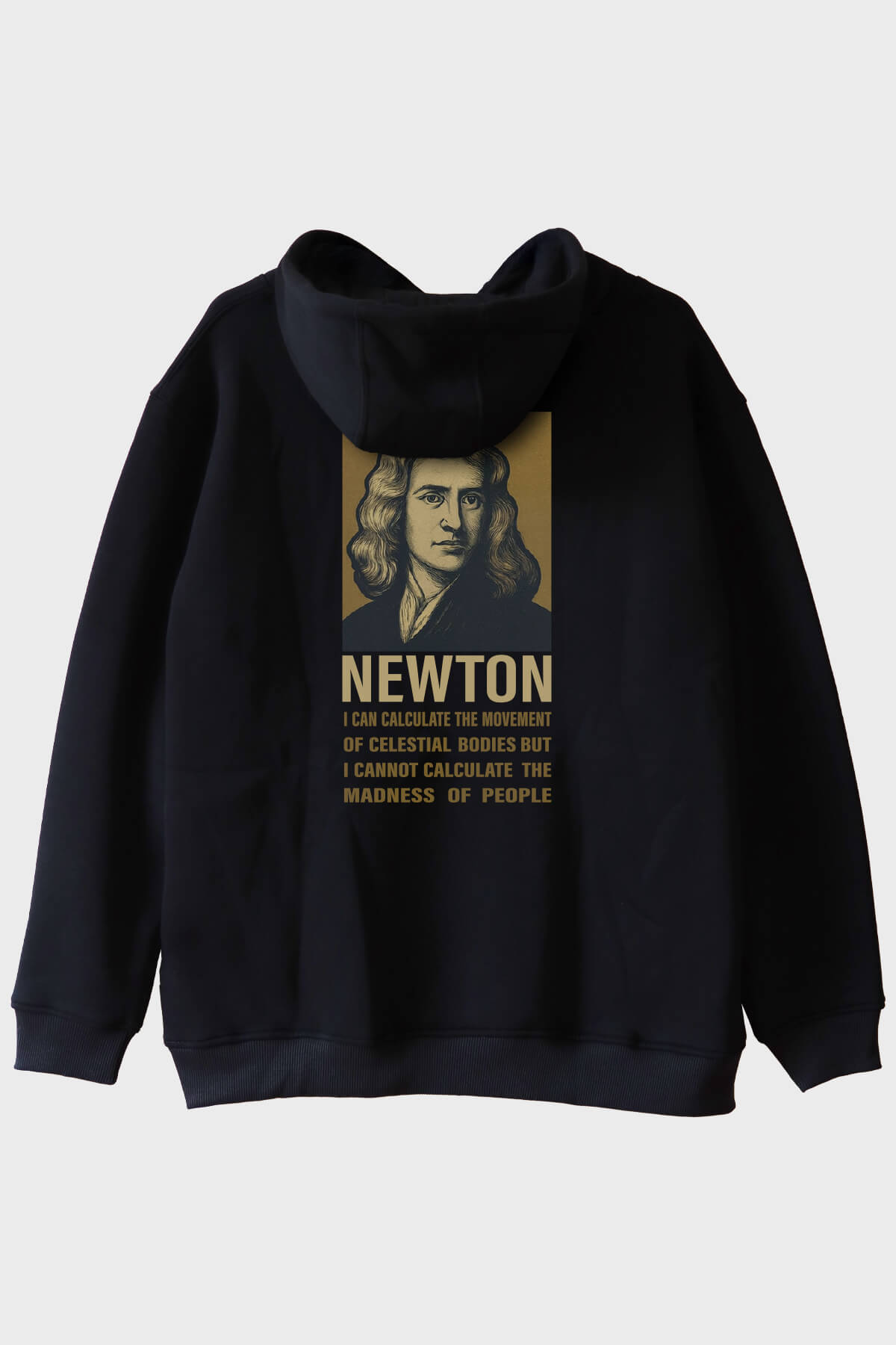Newton Alıntılı Hoodie, hem bilim dünyasının dehasına duyulan saygıyı hem de minimalizmin şıklığını bir araya getiriyor. Isaac Newton'un ismini taşıyan bu tasarım, merak ve bilimin bir araya geldiği noktada, bilim tutkunlarına unuttukları ilhamı hatırlatıyor. Üzerinde Newton'un "Eğer daha ilerisini görebildiysem, devlerin omuzlarında durduğum içindir" sözü yer alıyor ve bu ifade, hem geçmişe hem de geleceğe ışık tutan bir bakış açısını simgeliyor. Filosofisi, bilimsel devrimin sembolü olan Newton'un akıl dolu dünyasını gardırobunuza taşımak için harika bir yöntem sunuyor. Hoodie, özellikle Bilim ve Teknoloji ile ilgilenenler için vazgeçilmez bir parça.