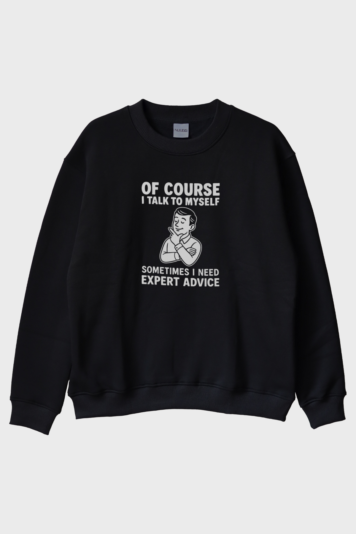 Günlük hayatınızda hem tarzınızı hem de mizahi yönünüzü ön plana çıkarmak ister misiniz? Of Course I Talk to Myself Baskılı Bisiklet Yaka Sweatshirt, tam da bu isteğinizi karşılamak için tasarlandı. Siyah zemin üzerine geniş beyaz yazılarla dikkat çeken bu bisiklet yaka sweatshirt, üzerindeki "Of Course I Talk to Myself, Sometimes I Need Expert Advice" yazısıyla hemen herkesi gülümsetmeyi başarıyor. Bisiklet Yaka Sweatshirtün ortasında yer alan düşünceli karikatür, mizahi mesajını kuvvetlendiriyor ve tasarımı tamamlıyor.