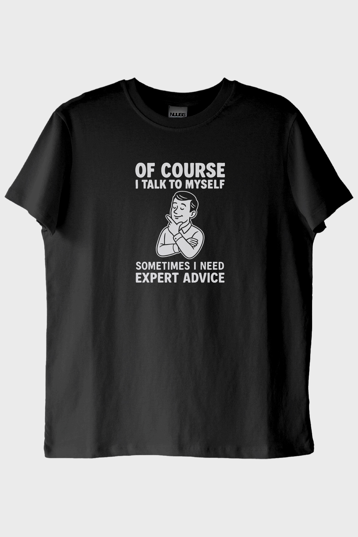 Günlük hayatınızda hem tarzınızı hem de mizahi yönünüzü ön plana çıkarmak ister misiniz? Of Course I Talk to Myself Baskılı Tişört, tam da bu isteğinizi karşılamak için tasarlandı. Siyah zemin üzerine geniş beyaz yazılarla dikkat çeken bu tişört, üzerindeki "Of Course I Talk to Myself, Sometimes I Need Expert Advice" yazısıyla hemen herkesi gülümsetmeyi başarıyor. Tişörtün ortasında yer alan düşünceli karikatür, mizahi mesajını kuvvetlendiriyor ve tasarımı tamamlıyor.