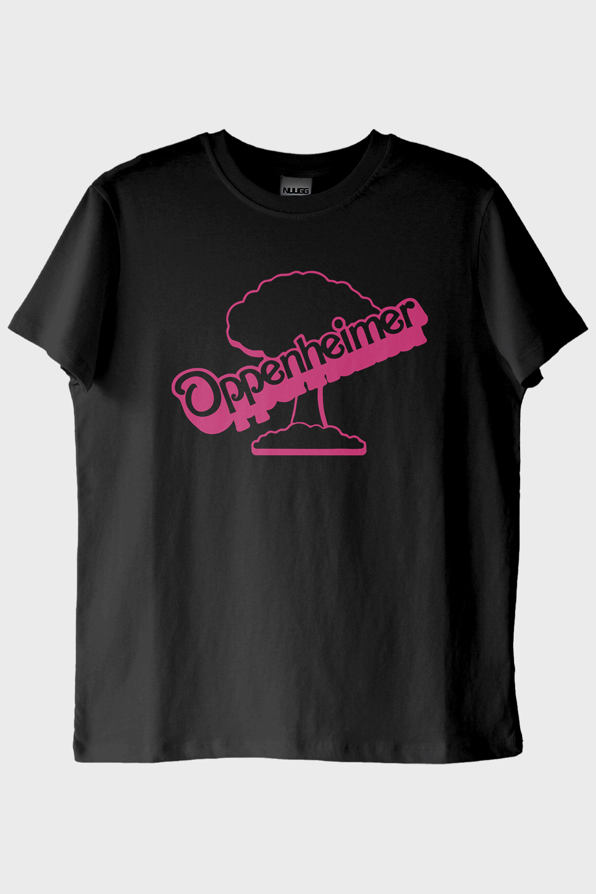 Siyah tişört zeminine parlak pembe renk kullanılarak basılmış "Oppenheimer" yazısı ve stilize mantar bulutuyla dikkat çeken bu tişört, hem Bilim ve Teknoloji hem de Retroverse kategorilerinde yerini alıyor. Tasarımın pikselli ve retro tarzı, nostaljik bir hava katarken modern bir estetik de sunuyor. Bu tasarım tişört, %100 pamuk kumaştan üretilmiş olup, yerli üretim kalitesine sahiptir. Cilt dostu, uzun ömürlü ve yüksek kalite baskısı ile günlük kullanım için ideal bir seçenektir.