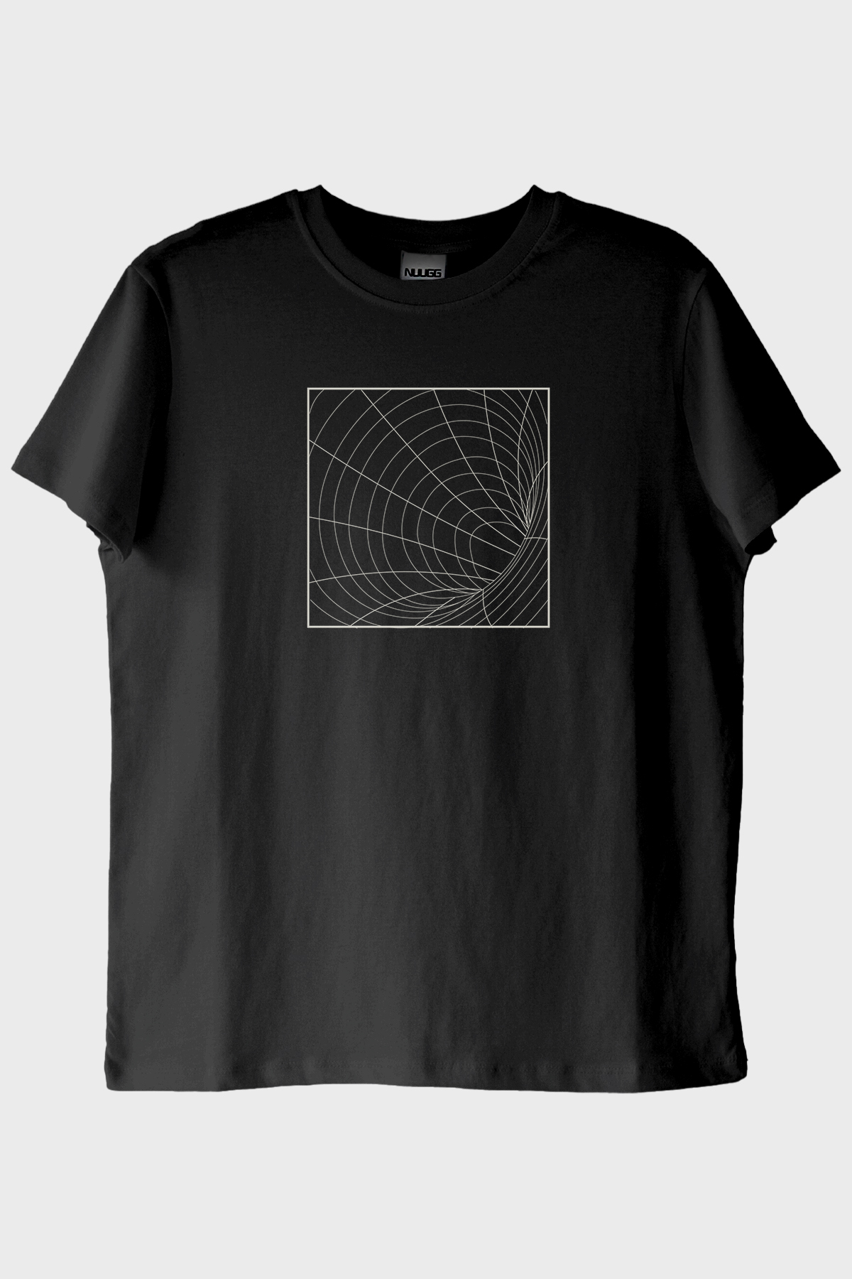 Optik İllüzyon Tasarımlı Solucan Deliği Baskılı Siyah Tişört