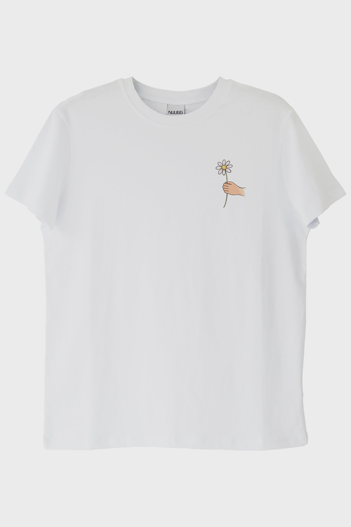 Papatya Desenli Tişört, üzerindeki papatya demeti ve narin bir şekilde papatya tutan el detayları ile minimal ve zarif bir tasarım sunuyor. Doğa severlerin ilgisini çekecek şekilde tasarlanan bu ürün, doğanın sadeliğini ve güzelliğini günlük yaşamınıza taşıyor. Her biri dikkatle planlanmış detaylar, hem estetik zevkinizi hem de çevreye olan sevginizi ifade etmenin harika bir yolu. Papatya Desenli Tişört, üzerinizdeki mesajları görenlerin ilgisini çekerken aynı zamanda şıklığınızı da ortaya koyar. Bu tasarım, günlük hayatta doğayı hissetmek isteyenler için harika bir seçenek sunuyor.