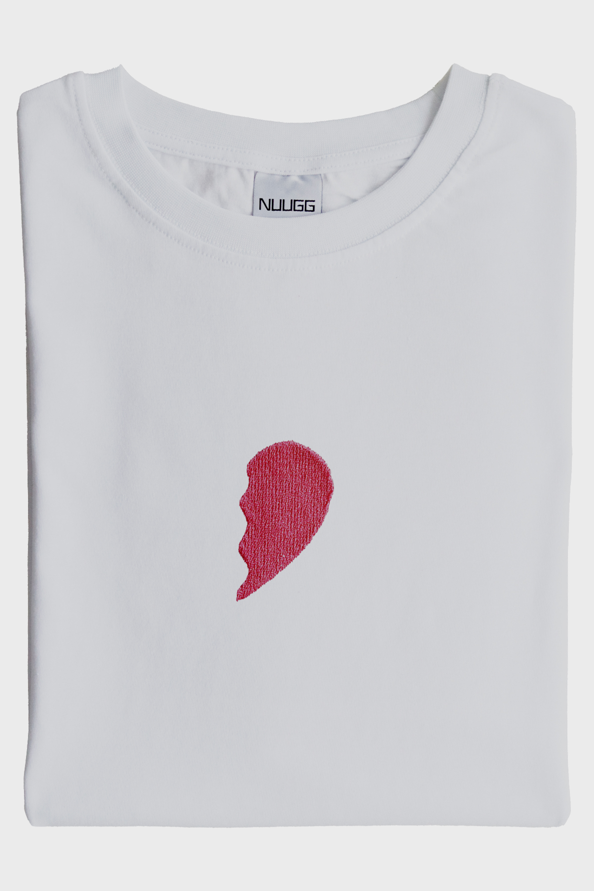 Pembe Yarım Kalp Desenli Tişört - Sevgililer Günü Hediyesi