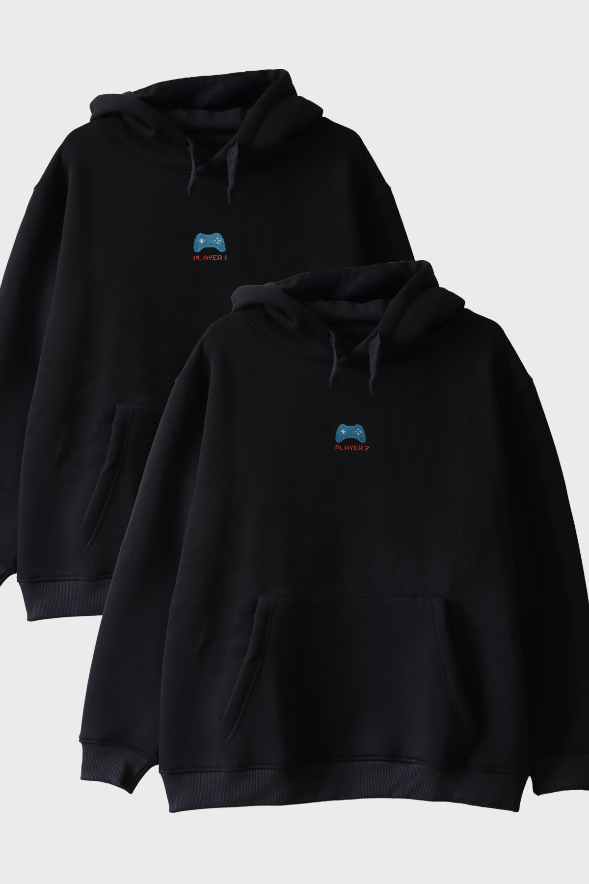 Her tişörtte, birinde "Player 1" diğerinde "Player 2" yazıları ve oyun konsolu simgeleri (joystick) dikkatle işlenmiştir. İki hoodie, birbirini tamamlayan tasarımlarıyla oyuncu ruhunu ve birlikte geçirilen zamanı simgeliyor.