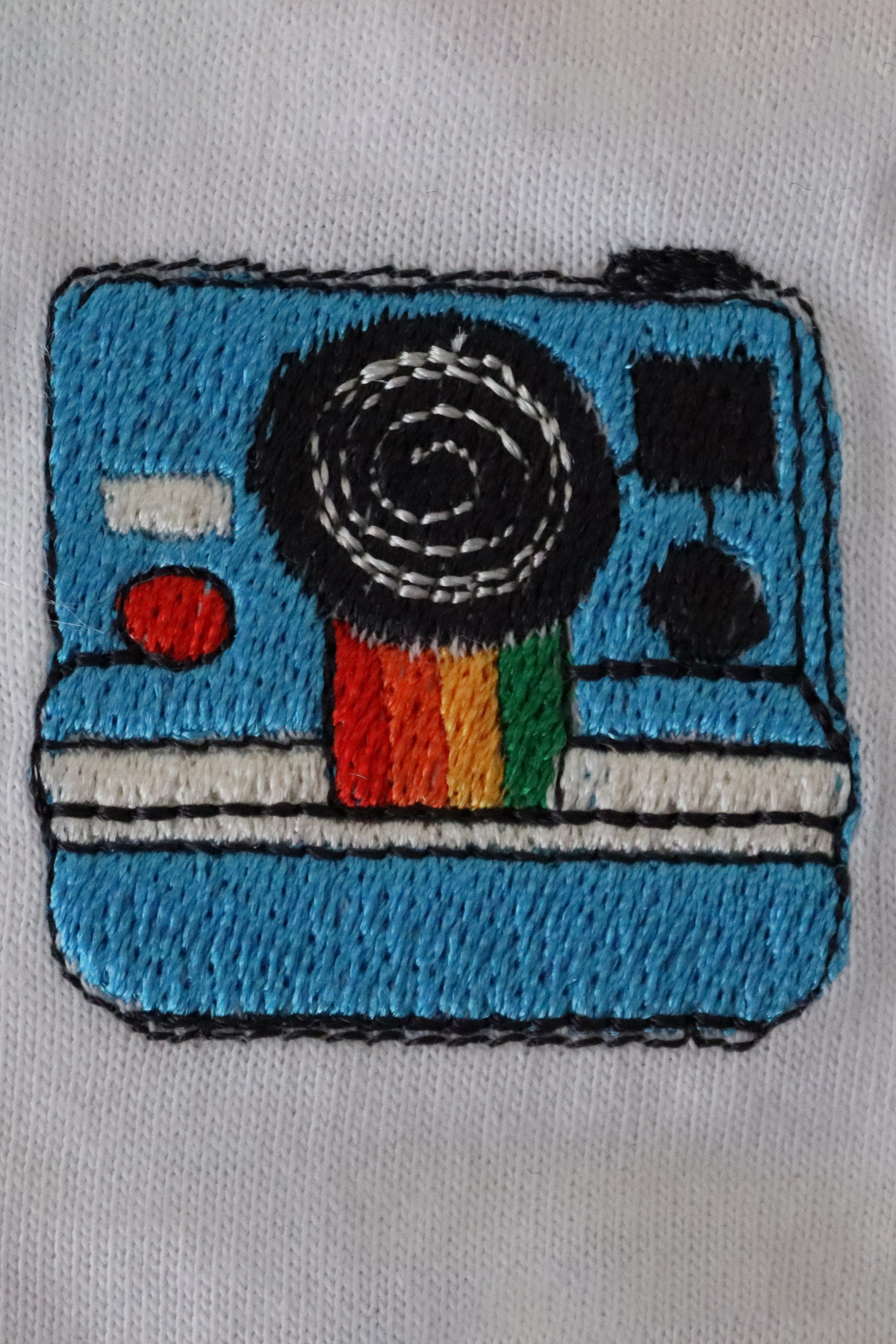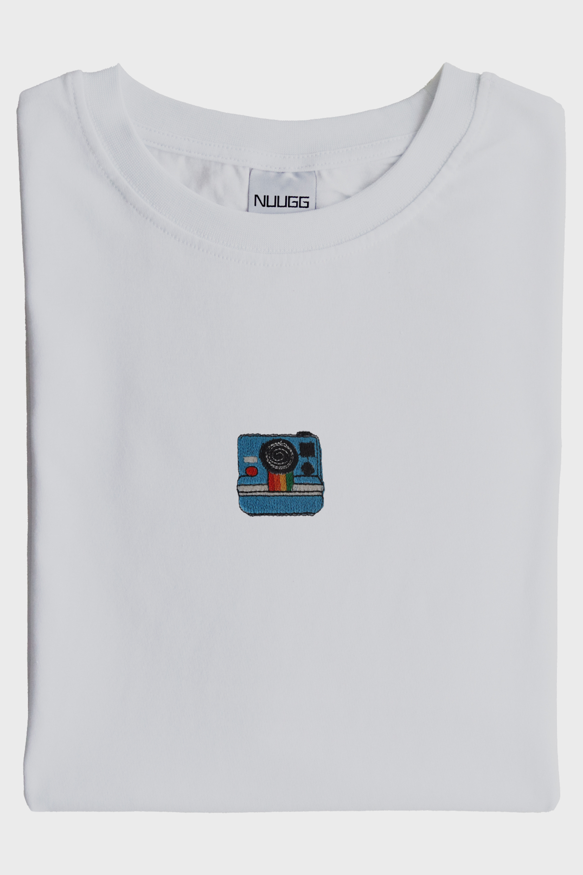 Polaroid kameralar, anında fotoğraf baskısıyla geçmişin en ikonik teknolojilerinden biri olarak hafızalarda yer etti. Bu tişört, detaylı nakış işçiliğiyle o dönemin ruhunu yaşatıyor. Minimalist ama etkileyici tasarımıyla tarzınıza farklı bir dokunuş ekleyin.