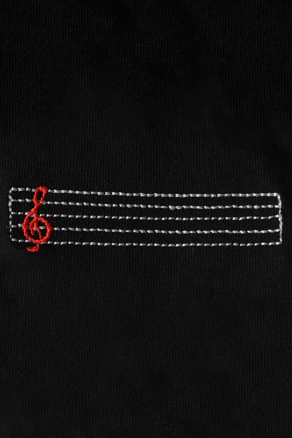 Porte Desenli Nakış Müzik Siyah T-Shirt