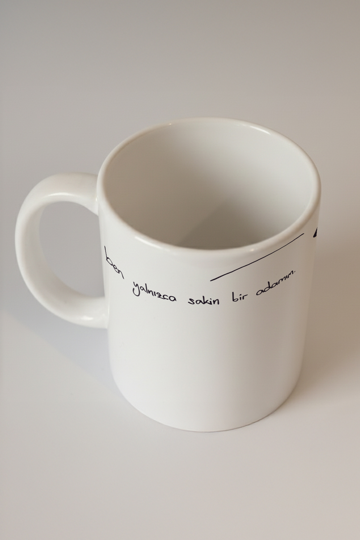 Minimalist bir anlayışla tasarlanmış olan beyaz kupa, üzerinde "ben yalnızca sakin bir adamım" yazısıyla dikkat çeker. Sade ve şık tasarımıyla, huzurlu bir yaşam tarzını benimseyenler için idealdir. Her sabah kahveniz veya çayınız eşliğinde güne başlarken ya da akşam üzeri dingin bir an geçirmek istediğinizde, üzerindeki mesaj size sakin ve huzurlu anlarınızı hatırlatır. Tarzınızı ve duruşunuzu yansıtan bu özel tasarım ile çevrenize de içsel huzurunuzu yansıtabilirsiniz. Ürünümüz, günlük hayatın kaosundan uzaklaşıp dinginliğe odaklanmak isteyenler için mükemmel bir seçimdir.