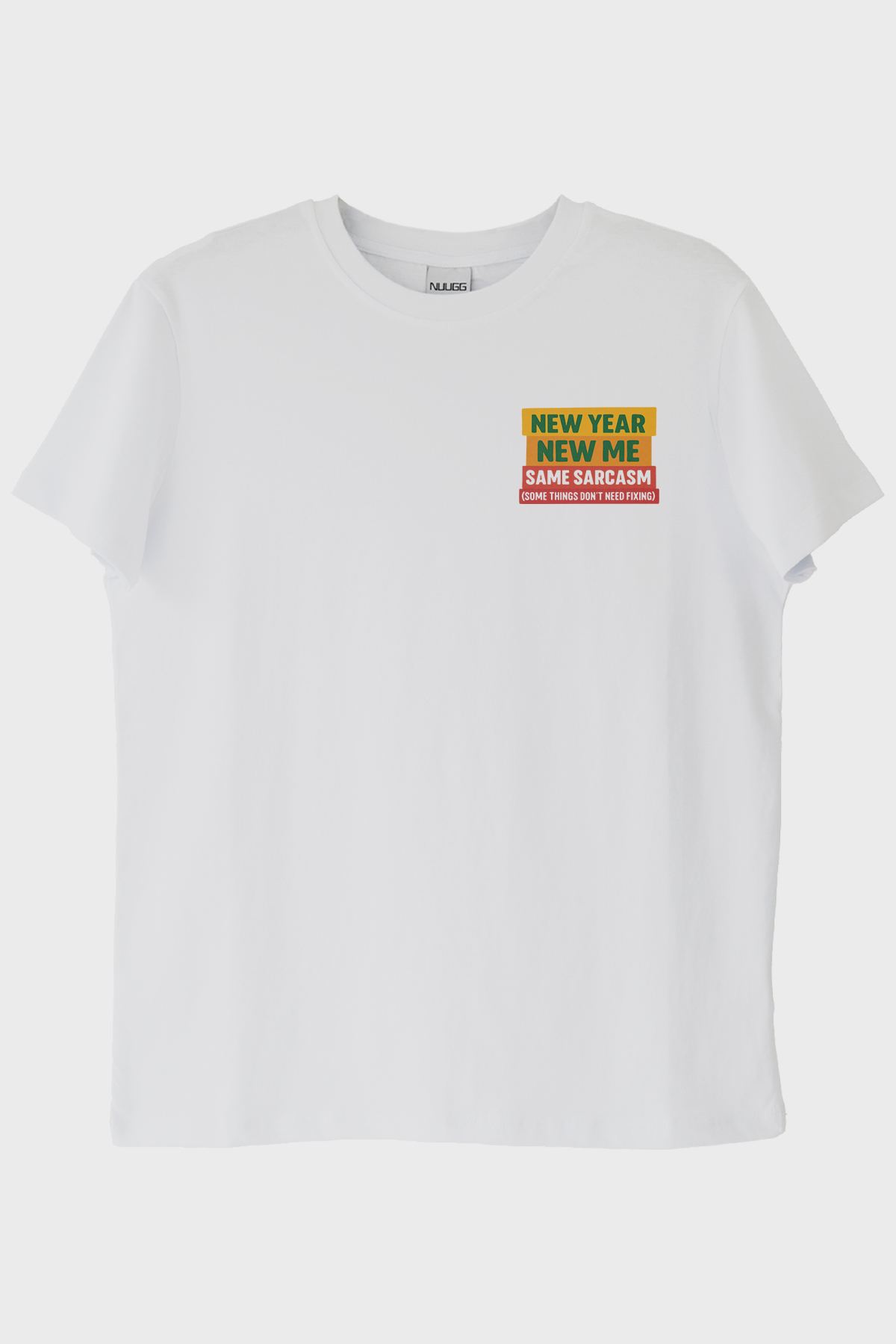 Yeni yıl kararları, genellikle büyük değişiklikler yapmak üzerine odaklansa da, alıştığımız mizahi perspektifimizden vazgeçmeye pek niyetimiz yok! Üzerinde 'New Year, New Me, Same Sarcasm' yazan bu esprili tişört, yılbaşı ruhunu kıvrak bir zeka ve ince alayla yansıtmak isteyenler için ideal bir seçenek. Hem eğlenceli hem de düşünceli bir tasarıma sahip olan ürün, mizahi ve ironik mesajlarıyla dikkat çekiyor. Punchline kategorisinin gözde parçalarından biri olan bu ürün, "Aynı espri anlayışımla her yıl beni değiştiremezsiniz" diyenlerin favorisi olacak.