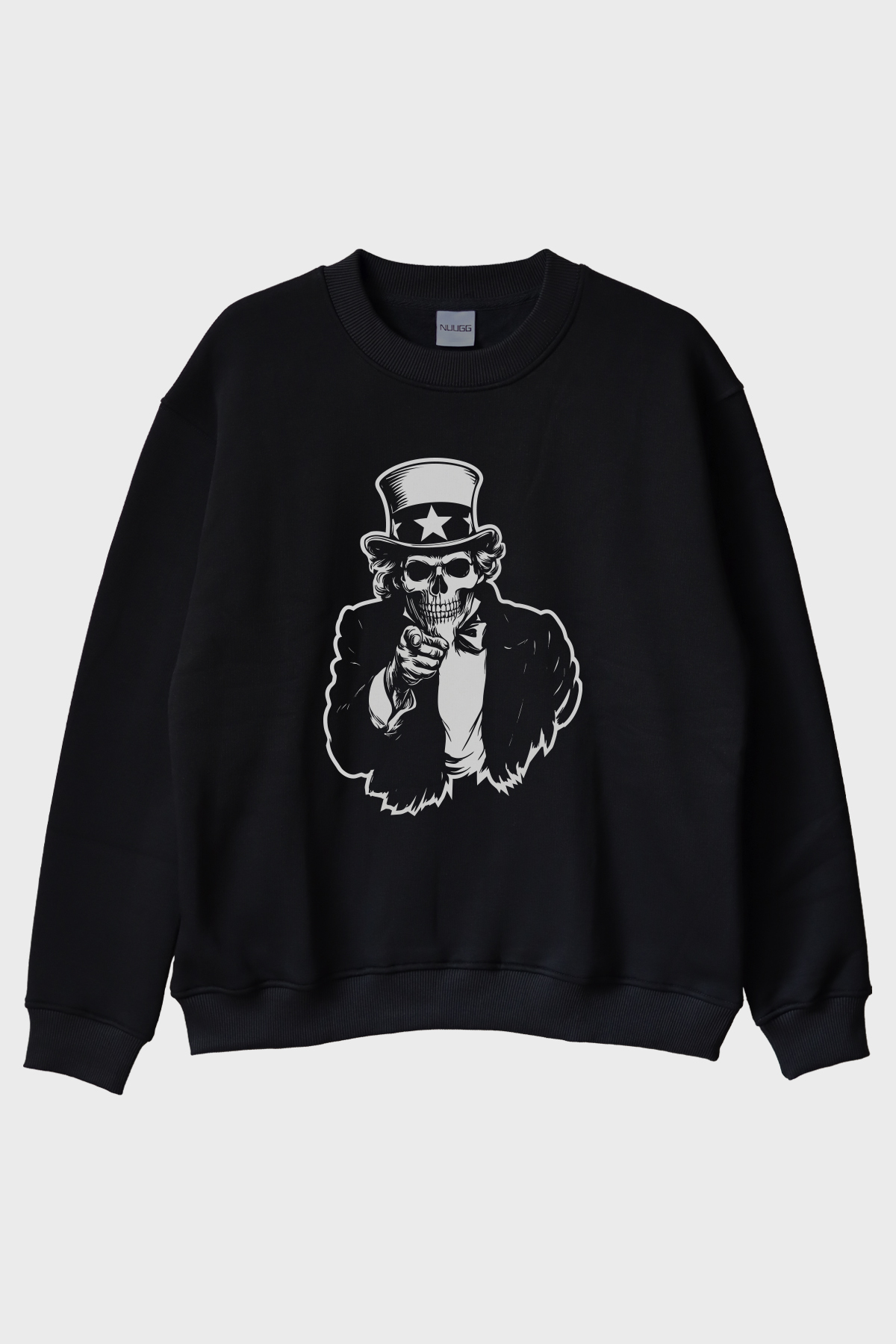 Bu orijinal tasarımlı bisiklet yaka sweatshirt, stilize edilmiş iskelet figürü ile mizah ve tarzı harmanlıyor. Abartılı detayları ile her türden giyim tarzına uyum sağlayabilir. Kullanım alanları ise sınırsızdır; günlük yaşamda casual bir kombin olarak kullanılabileceği gibi, özel etkinliklerde veya sosyal buluşmalarda da tercih edilebilir.