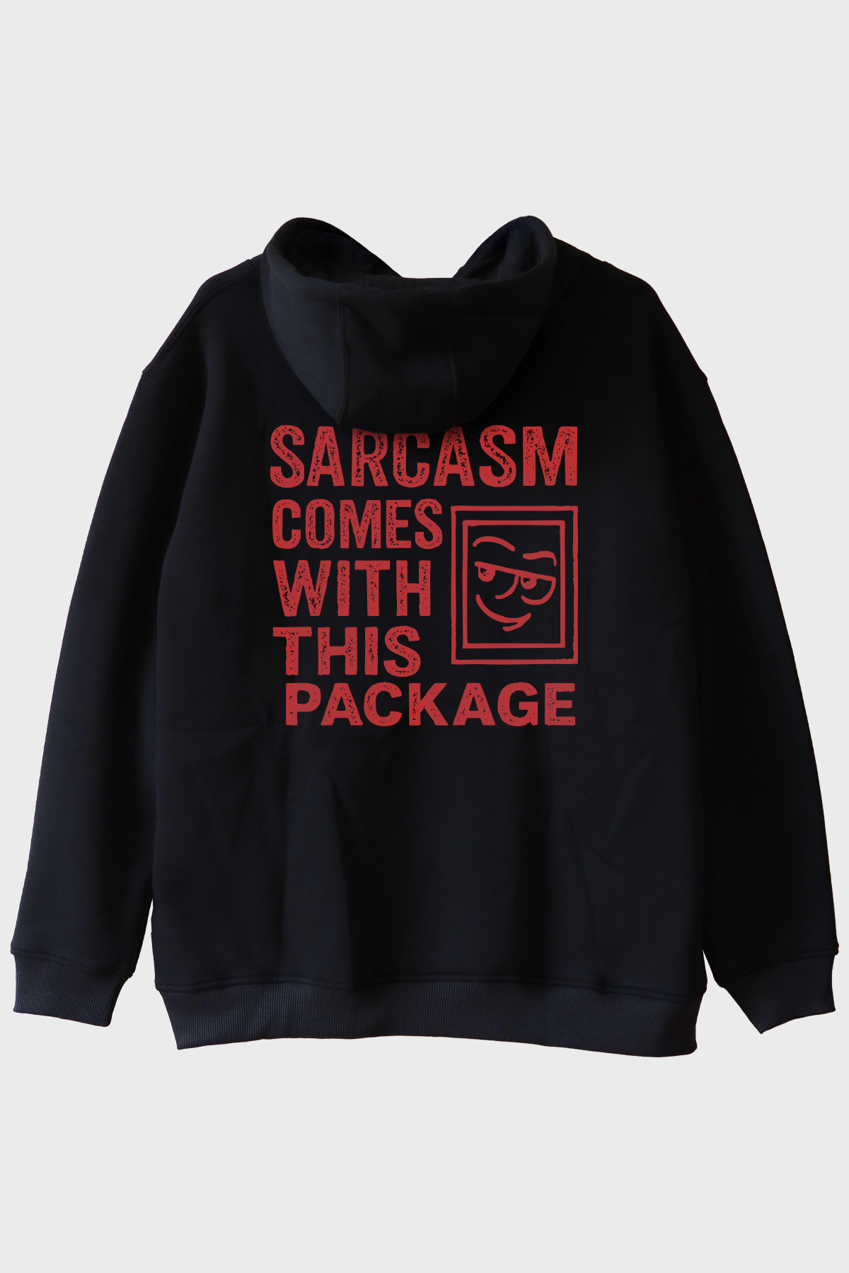 Mizahi bir tarz arıyorsanız, bu hoodie tam size göre! Üzerinde kalın ve dikkat çekici kırmızı harflerle yazılmış 'Sarcasm Comes With This Package' ifadesi, alaycı ve esprili kişiliğinizi vurgulamanın harika bir yolu. Beyaz pamuklu kumaş üzerine basılan bu tasarım, kırmızı yazı ve minimalist çizimle sizi ön plana çıkaracak.